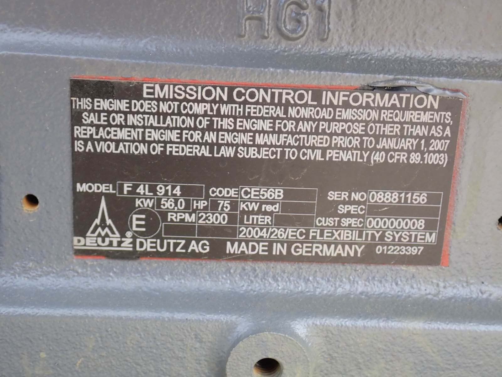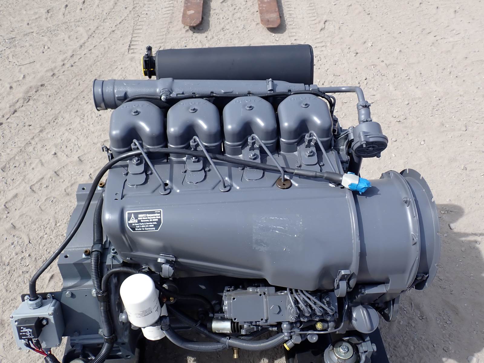 Deutz F4L914 diesel engine, 4 cylinder, air cooled, 75 HP at 2300 RPM rating, naturally aspirated, complete power unit w/ accessories as pictured, PRE EMISSIONS, UNUSED FACTORY SURPLUS -- NOT A REMAN !! Engine comes complete as pictured on mounting skid w/ panel & accessories, WILL REPLACE F4L912 AND F4L913 SERIES AS WELL AS OTHER ENGINES -- ONLY ONE AVAILABLE -- DON'T MISS IT !!