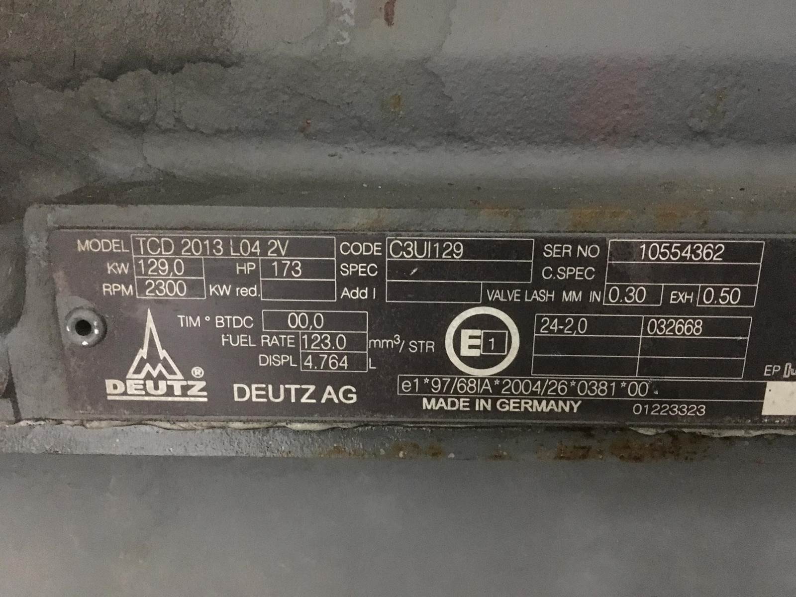 == Information in English == Type: Engine, Type number: TCD2013L06 4V Engine Brand: DEUTZ, Conditie: USED, Nominal Power @ Nominal Rpm: 243...