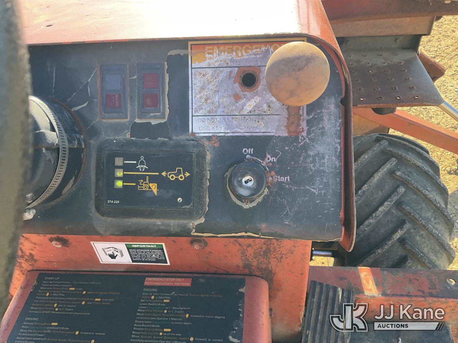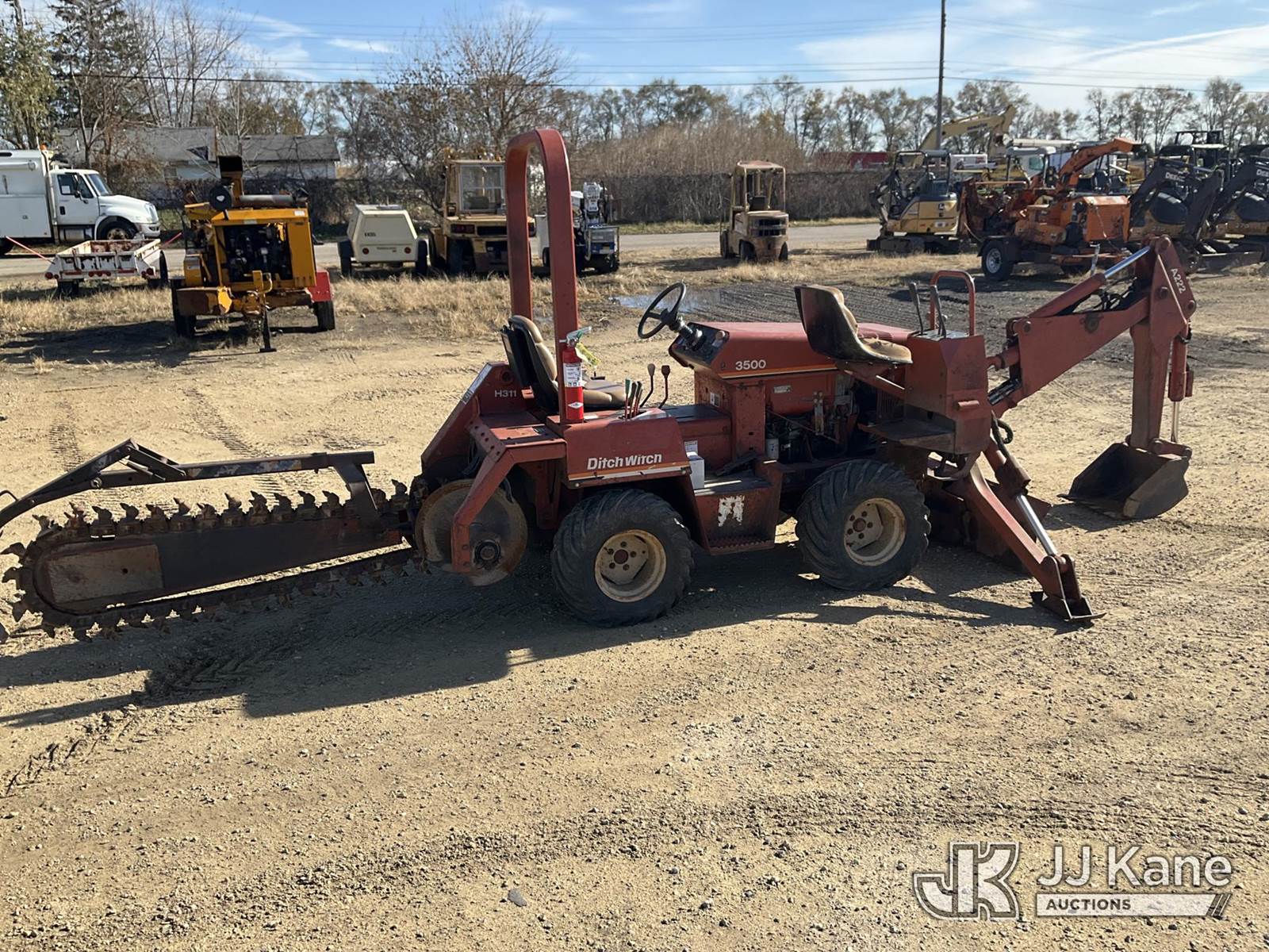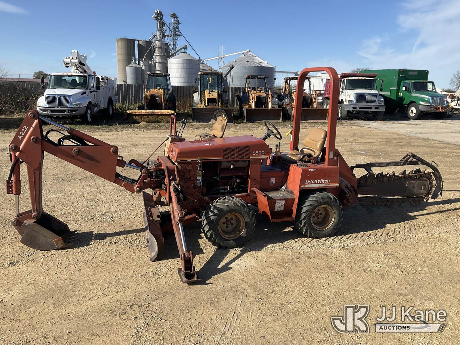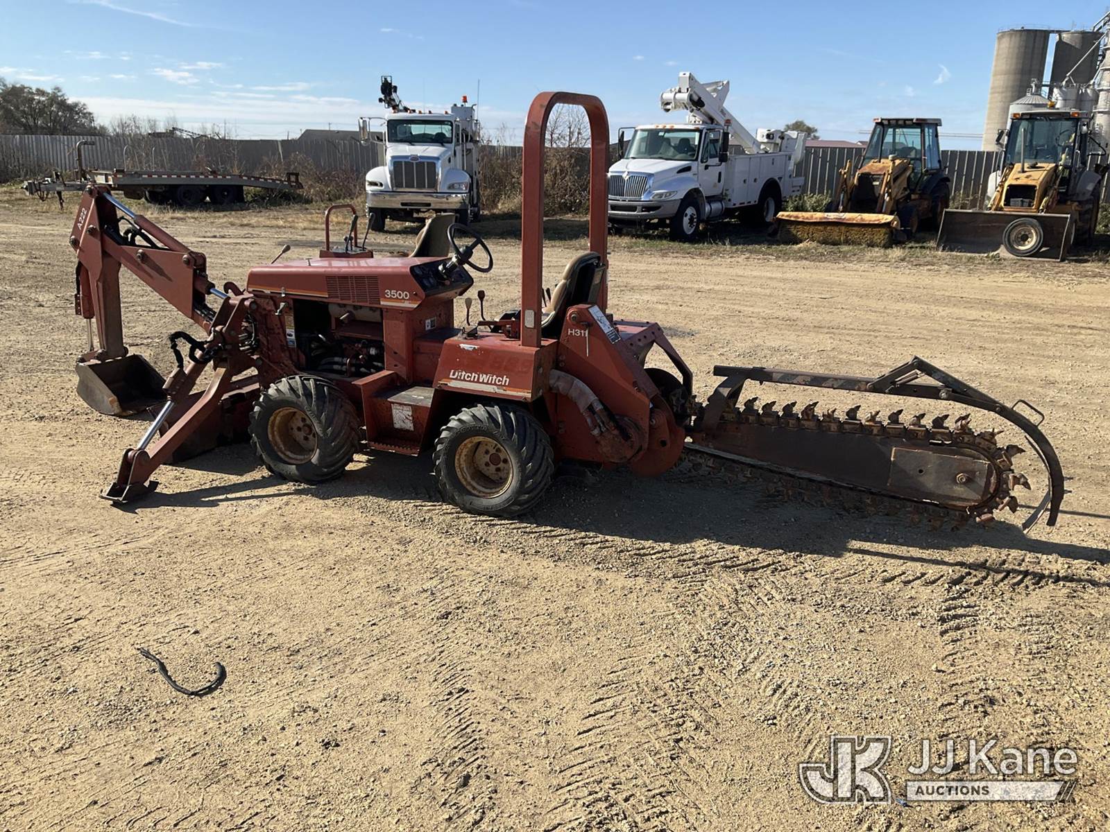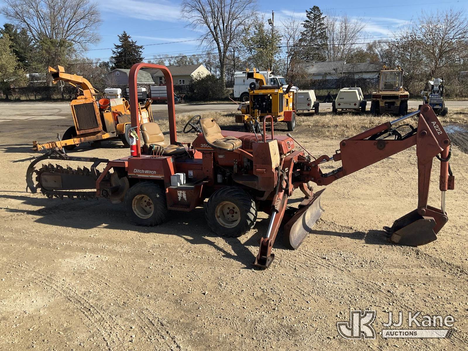 Ditch Witch 3500 Rubber Tired Trencher, s/n 3F1178, Deutz Hydrostatic, diesel, with trencher boom, backhoe attachment, backfill blade & ROPS, (Runs & Operates)(Key broke off in ignition) (Reads 1,573 hours) NOTE: This unit is being sold AS IS/WHERE IS via Timed Auction and is located in South Beloit, IL. Inspection & preview days for this unit are the 2 business days prior to the first day of items closing for this auction, item is located at 14354 Dearborn Ave South Beloit, IL and hours of operations are 8a-4p. For pre-sale questions, please contact Derek Eklund at (608) 904-0618 or (derek.eklund@jjkane.com). (Buyer is responsible for removal. Assistance by consignor or JJ Kane Auctioneers is not assured.)