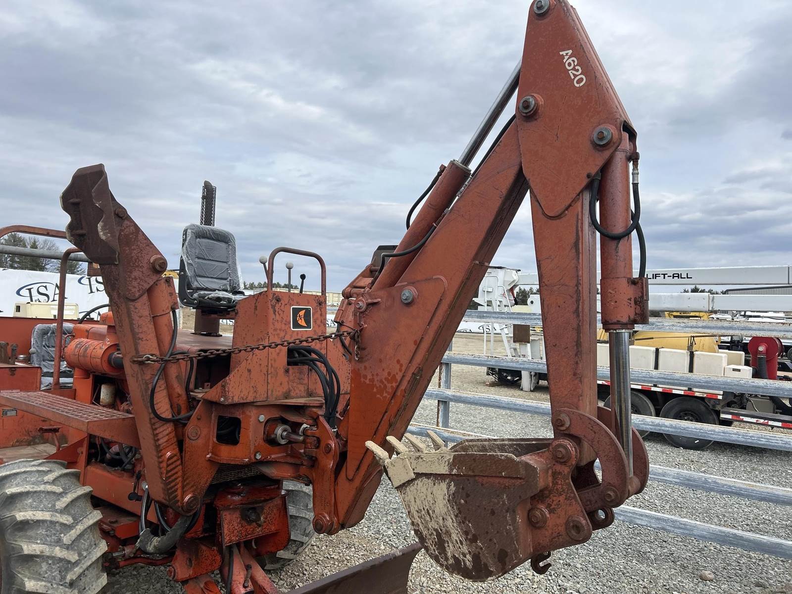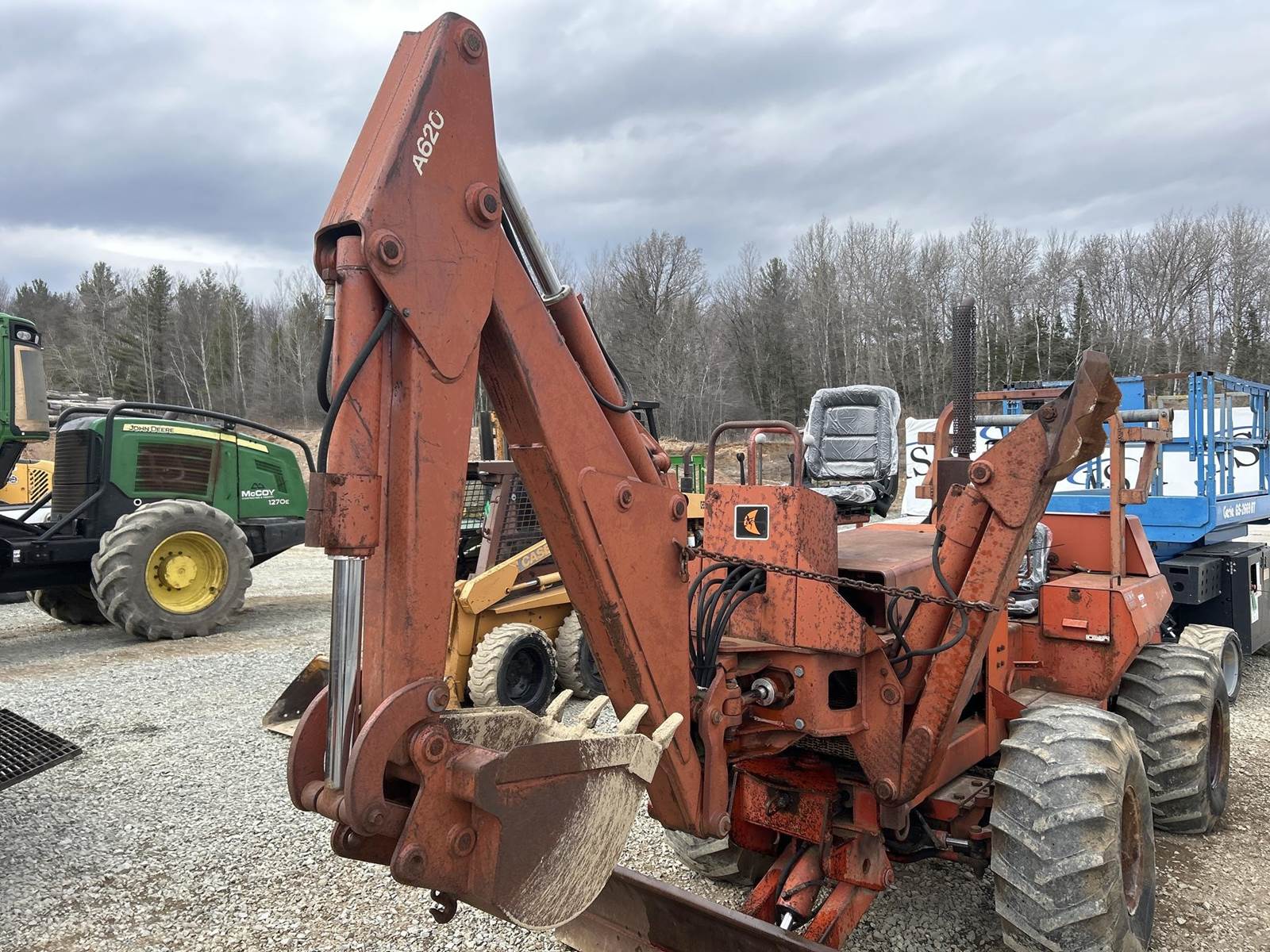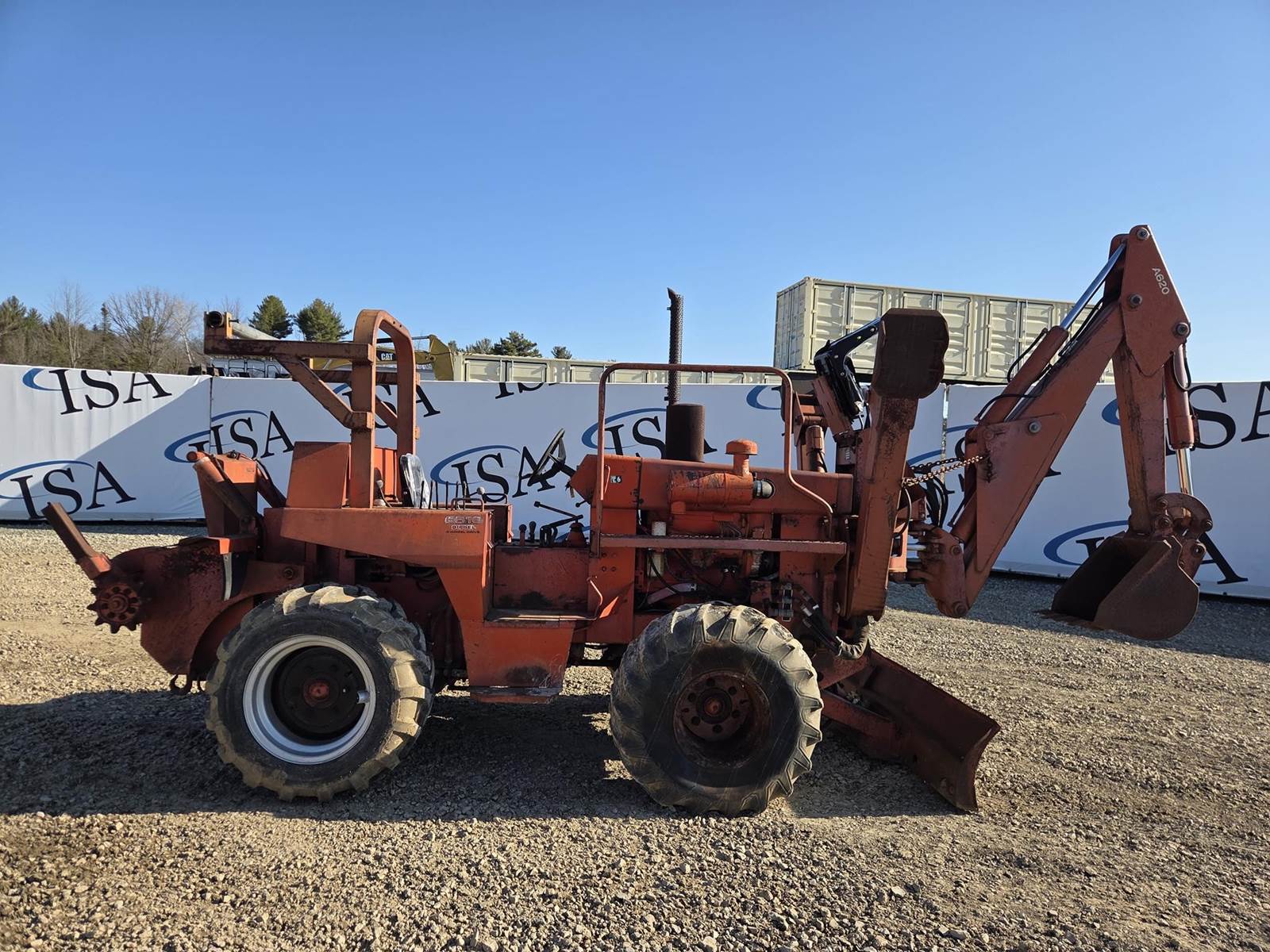 Deutz 4 Cylinder Diesel Engine, 4 Speed Transmission, 4x4, Charles Machine A620 Hoe Attachment, Approx 18" Bucket Width, Approx 72" Backfill Blade Width, Boom Swing, Front Outriggers, Rear Charles Machine A550 Trencher Mount, OROPS, 4 Wheel Steer, 16.5L-16.1 Front Tires, 500/45-20 Rear Tires