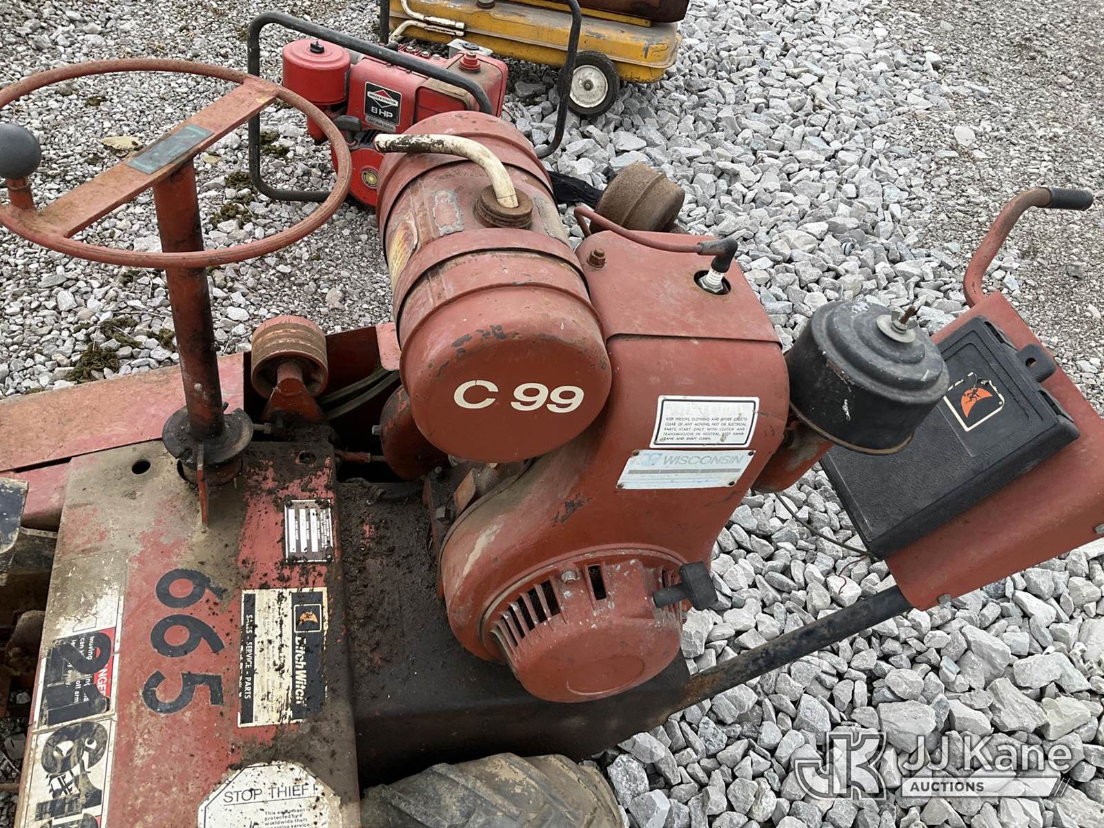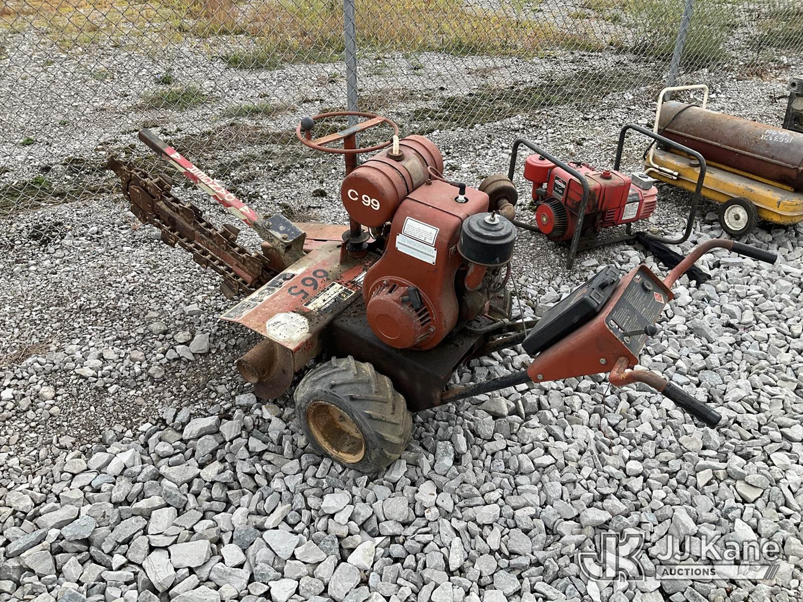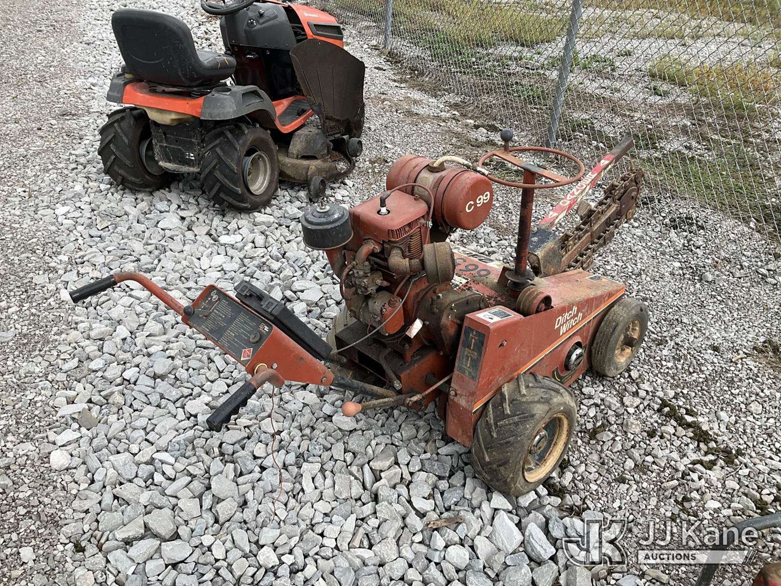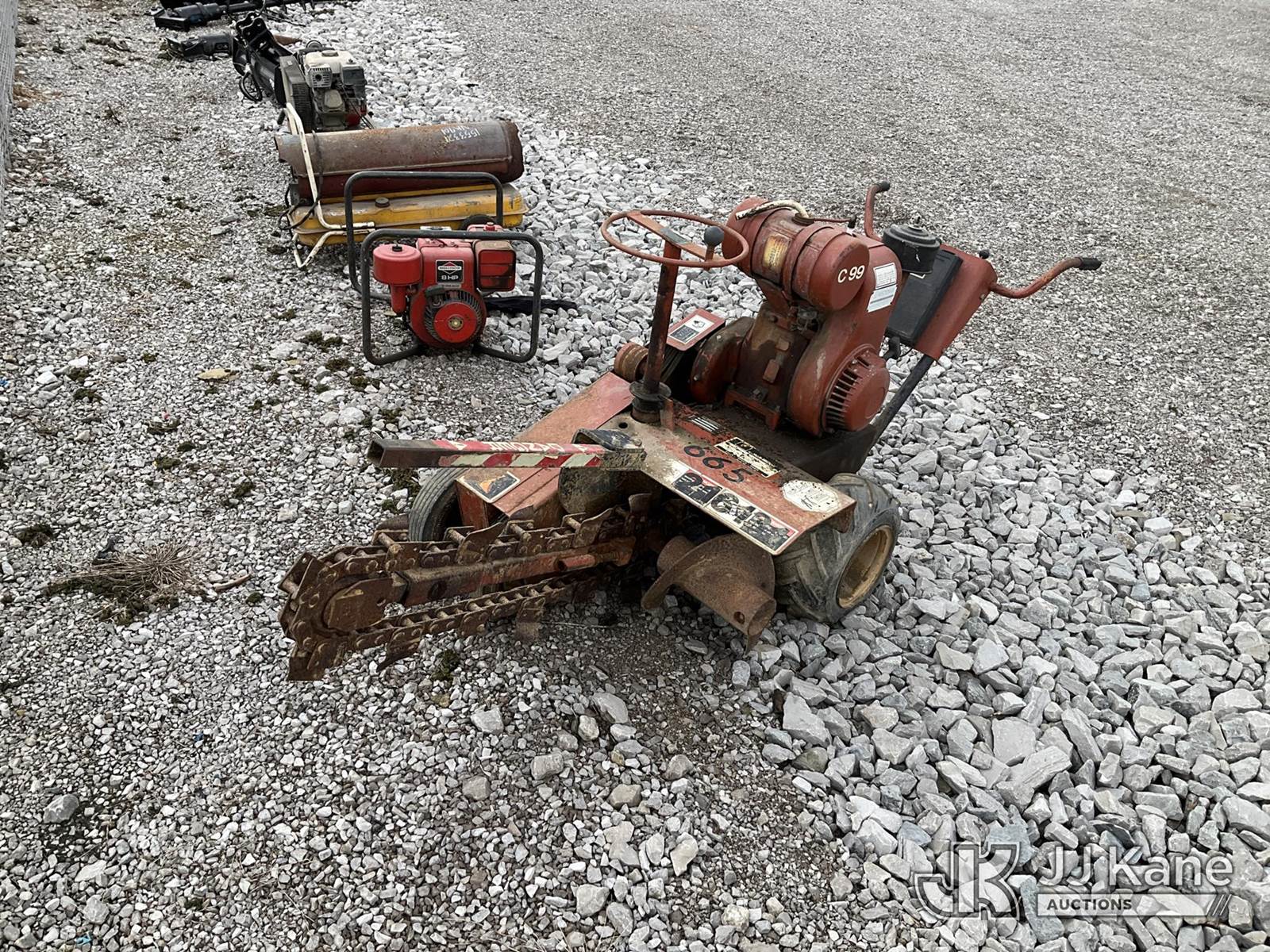 Ditch Witch C99 Walk-Behind Trencher, s/n 5F0098, Hydrostatic, Gas, (Not Running, Condition Unknown) (No Key, Bad Tires) NOTE: This unit is being sold AS IS/WHERE IS via Timed Auction and is located in Verona, KY. Inspection & preview days for this unit are the 2 business days prior to the first day of items closing for this auction, item is located at 2841 Verona-Mudlick Rd Ste B Verona, KY 41092 and hours of operations are 8a-4p. For pre-sale questions, please contact Office Staff @ (502) 612-5080. Auctioneer Michael Whitebread / License # 256617. (Buyer is responsible for removal. Assistance by consignor or JJ Kane Auctioneers is not assured.)