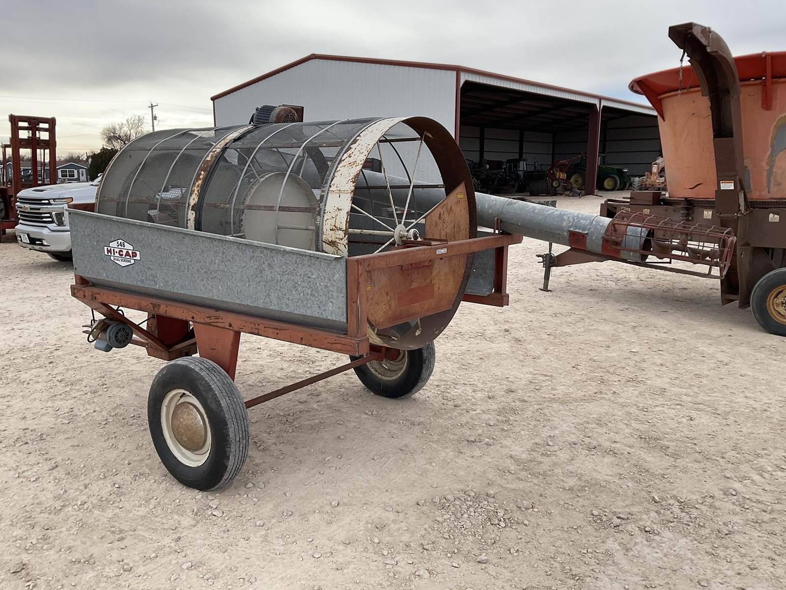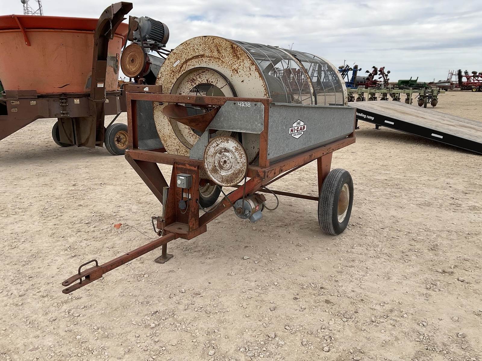 DMC HI-CAP 548 grain cleaner. Has two electric motors on it. Has the auger to load in the grain so it can be cleaned. Nice grain cleaner!,