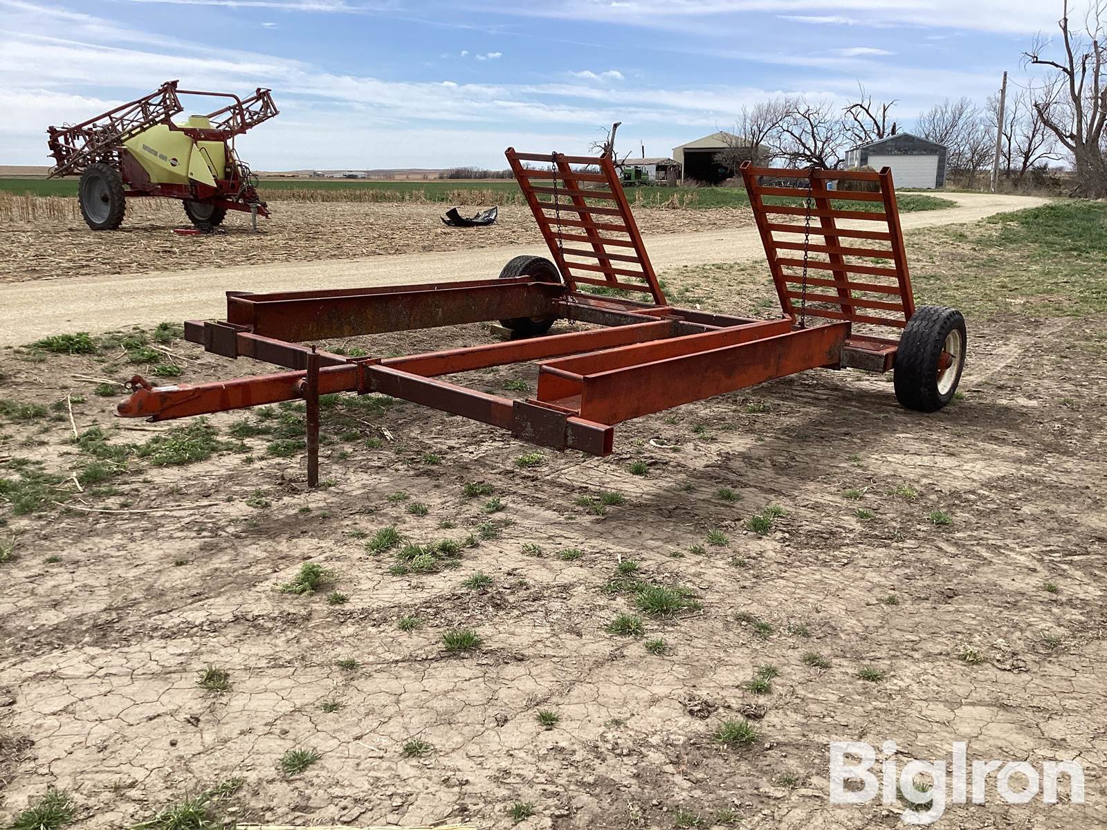 Donahue S/A Swather Trailer, 2" ball hitch, 8' center to center cradles, 8.5" wide cradles, 3' wide ramps, tire size: 9.50-16.5LT, SN: 1066