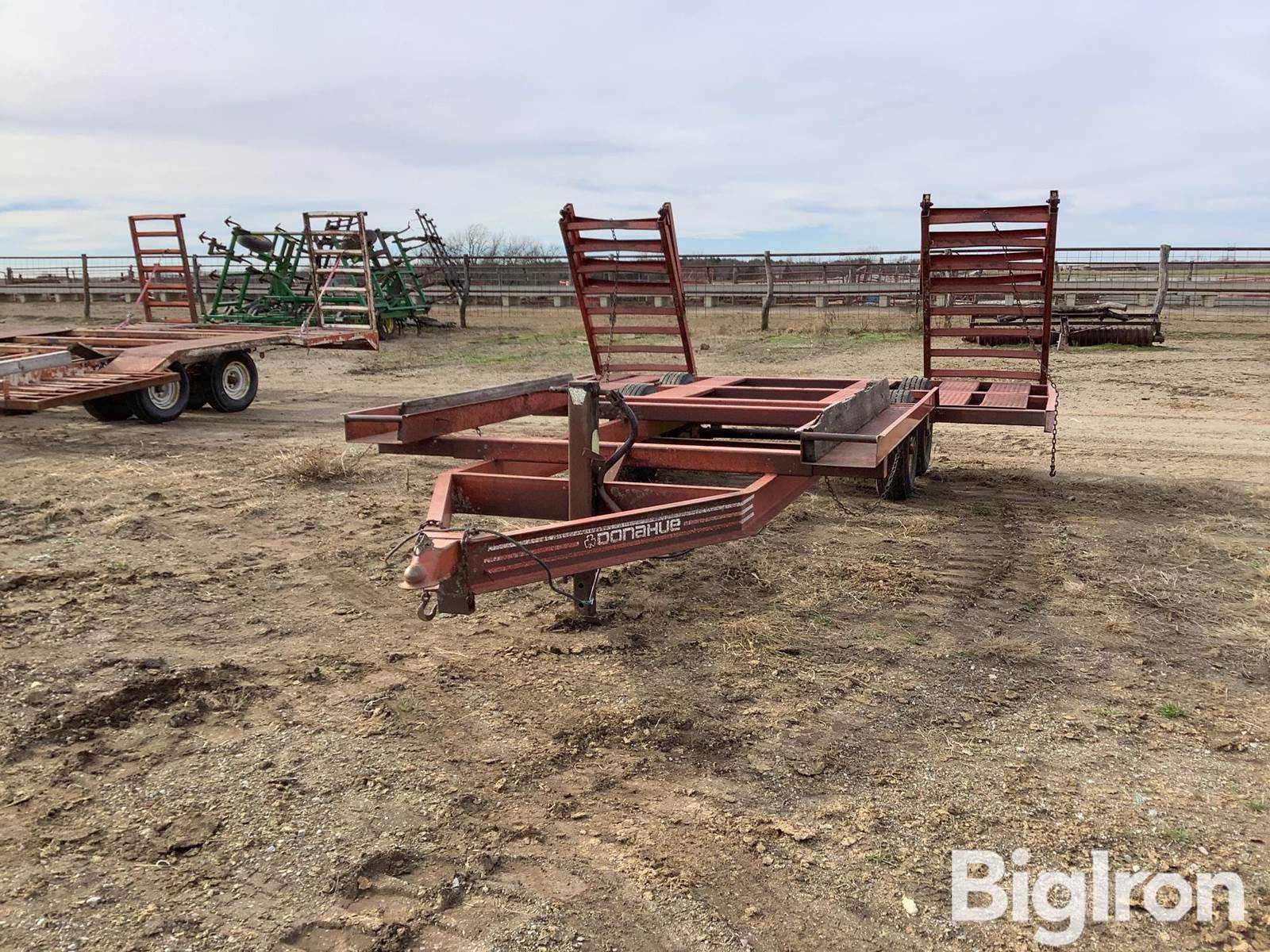 Donahue Swather Trailer, 2-5/16" ball hitch, adjustable width for rear tires, 12' wide at rear, fold-up floor plates, 90" long folding ramps are 32" wide, 225/75R15 tires on 8-bolt Rims