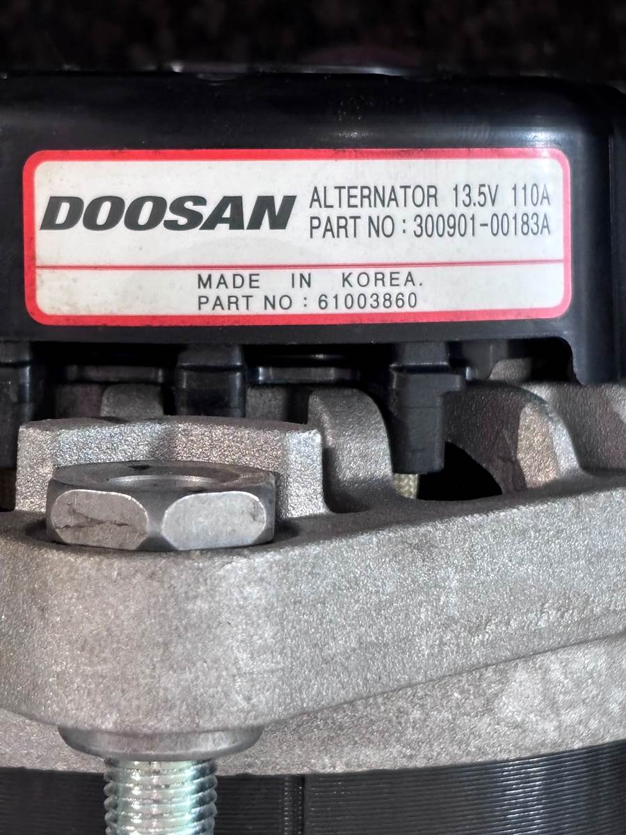 (SURPLUS NEW/ ENGINE TAKEOFF) Doosan 45A Alternator, for sale!!! Volts: 13.5; Amperage: 110; Part #: 300901-00183A, 61003860; Stock #: AL1086