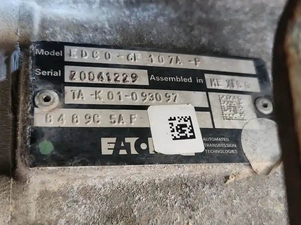 (Used) 2019 Eaton/Fuller (AT), TRANSMISSION ASSEMBLY- Model: EDCO-6F107-AP, Serial Number: Z0041229, Part Number: TA-K01-093097, Engine: Cummins B6.7, For more information about this item, give us a call. We ship Worldwide! (CRG HEAVY TRUCK PARTS) 929 W PULASKI HWY, ELKTON, MD 21921, Serial#: Z0041229, Engine Make: Cummins, Engine Model: B6.7, Casting#: Z0041229