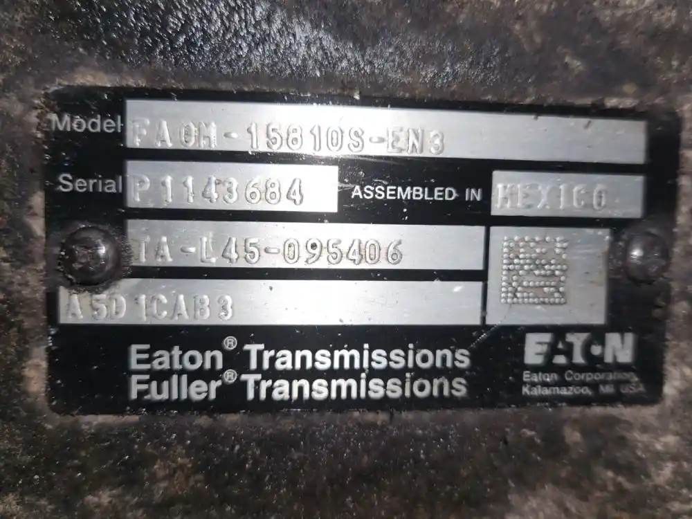 (Used) 2018 Eaton/Fuller (AT), TRANSMISSION ASSEMBLY- Model: FAOM-15810S-EN3, Serial Number: P1143684, Part Number: TA-L45-095406, Engine: International A26, For more information about this item, give us a call. We ship Worldwide! (CRG HEAVY TRUCK PARTS) 929 W PULASKI HWY ELKTON, MD 21921, Serial#: P1143684, Engine Make: International, Casting#: P1143684, Engine Model: A26