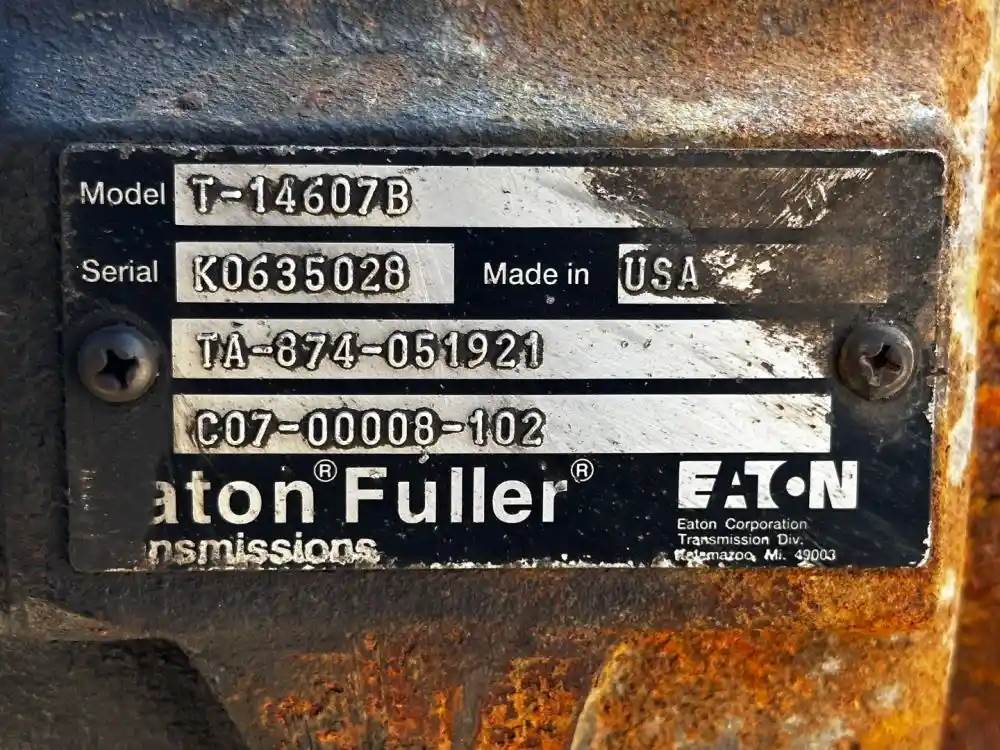 (Used) 2006 Eaton/Fuller (MT), TRANSMISSION ASSEMBLY- Model: T14607B, Serial Number: K0635028, Part Number: TA-874-051921, Engine: Mercedes MBE 926, Reference Images for condition. For more information about this item, give us a call. We ship Worldwide! (CRG HEAVY TRUCK PARTS) 929 W PULASKI HWY, ELKTON, MD 21921, Serial#: K0635028, Engine Make: Mercedes, Engine Model: MBE 926, Casting#: K0635028