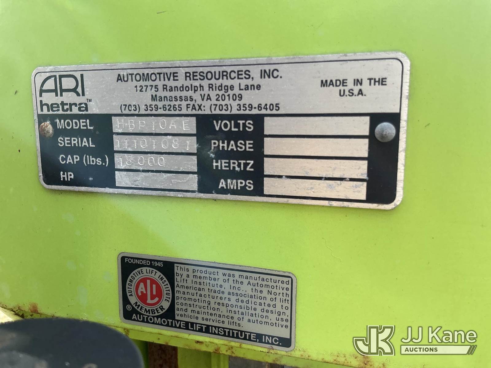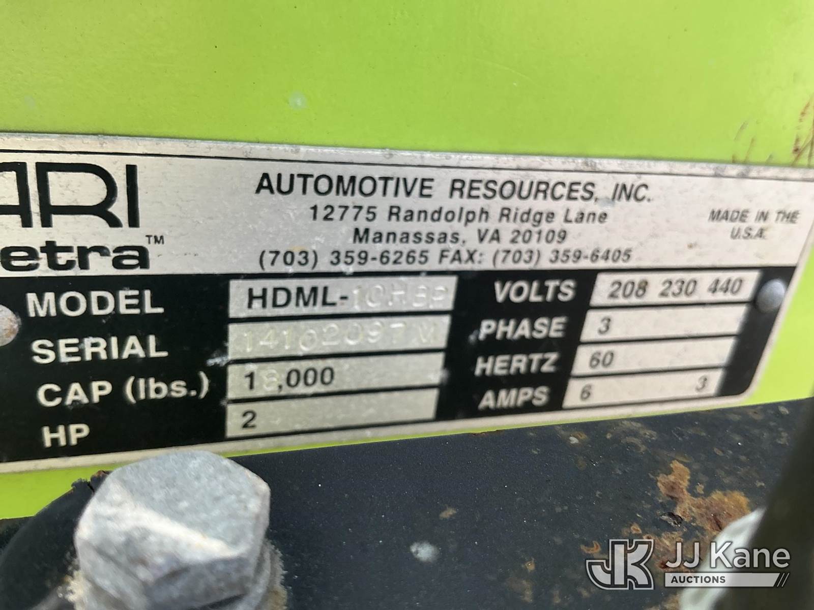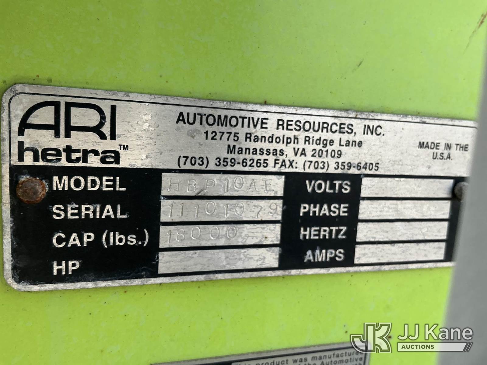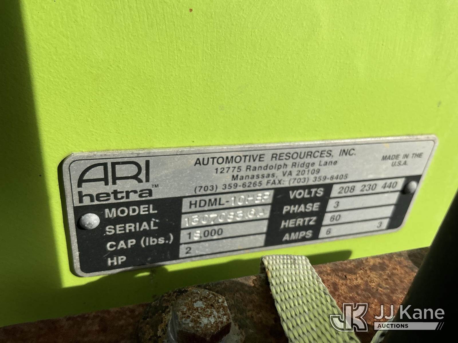 electric, (4) ARI-hetra, Portable lifting system 18,000lbs Max Cap (Condition Unknown ) NOTE: This unit is being sold AS IS/WHERE IS via Timed Auction and is located in Thonotosassa, FL. Inspection & preview days for this unit are the 2 business days prior to the first day of items closing for this auction, item is located at 11720 N US 301 Thonotosassa, Fl 33592 and hours of operations are 8a-4p. For pre-sale questions, please contact Office Staff @ (813) 986-2485. (Buyer is responsible for removal. Assistance by consignor or JJ Kane Auctioneers is not assured.)