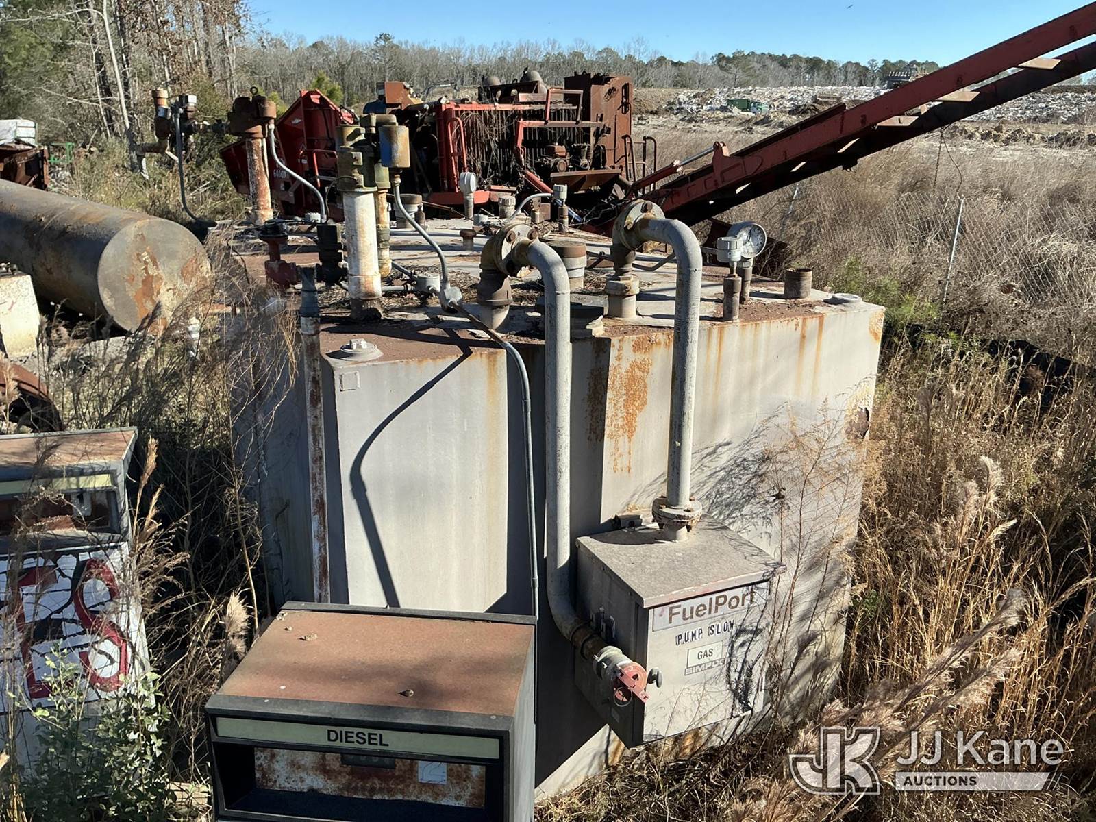 Empty Fuel Tank and two Gas boy pumps, 1000gal diesel and 3000gal gas, (Not Drained/Purged) NOTE: This unit is being sold AS IS/WHERE IS via Timed Auction and is located in Ridgeland, SC. For more information & removal arrangements please contact Pete Klimek @ 843-323-6538. (Buyer is responsible for removal. Assistance by consignor or JJ Kane Auctions is not assured.)