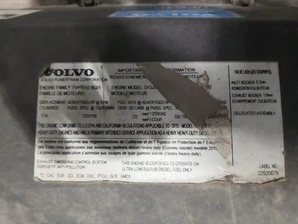 Volvo D13 Engine for a 2016 Volvo VNL