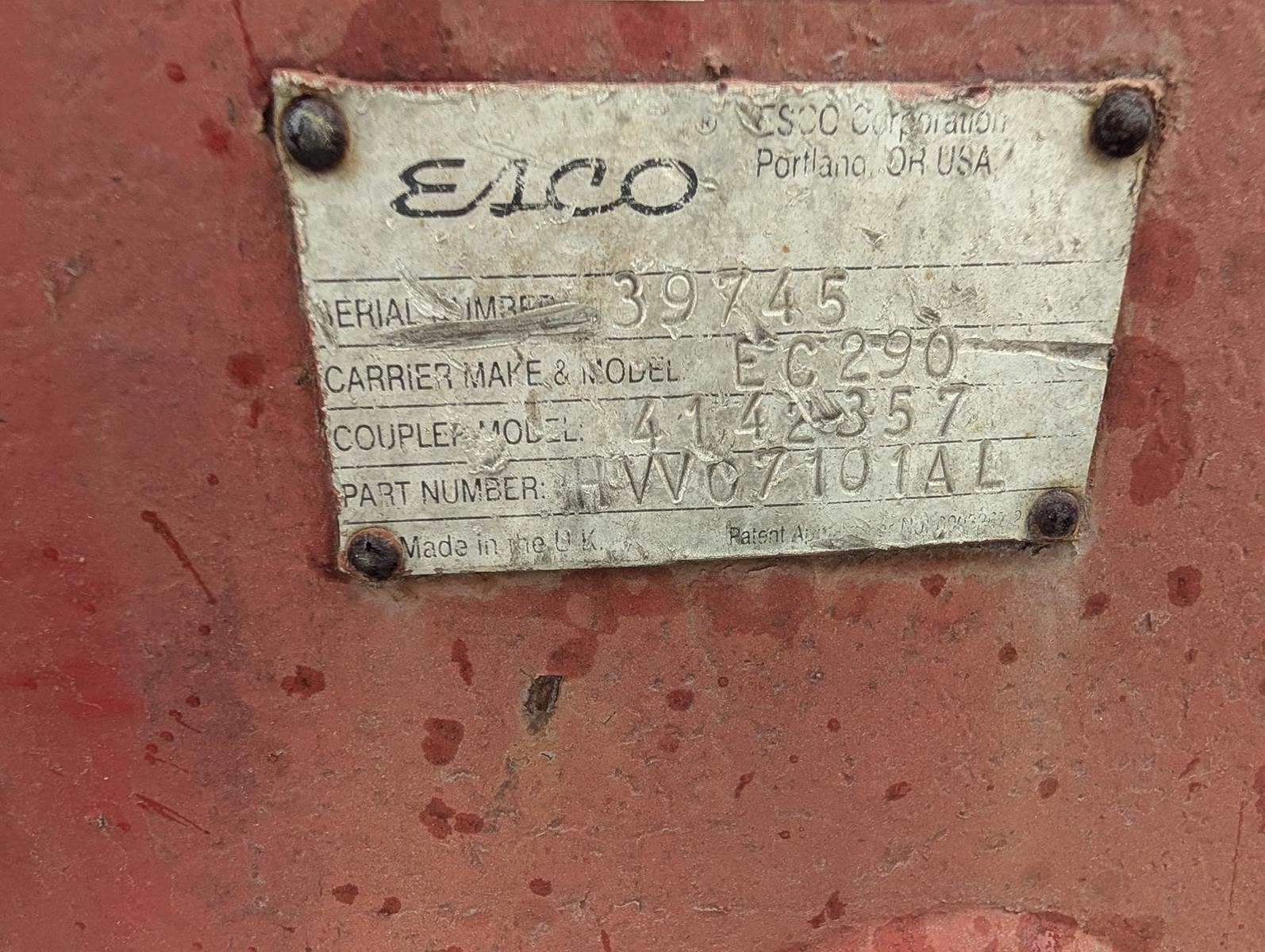 ESCO 4142357 Hydraulic Quick Coupler