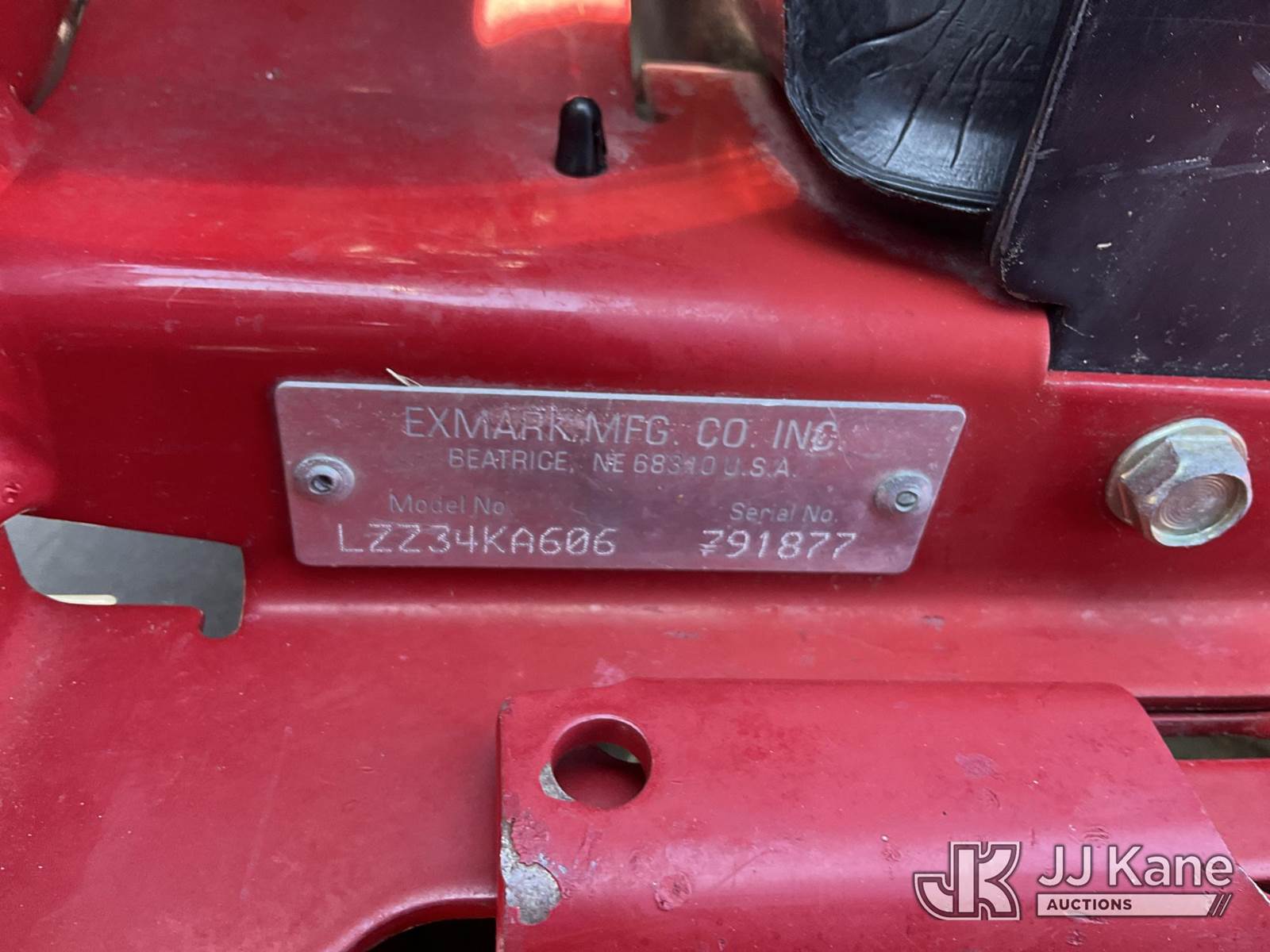 Exmark LZZ34K606 Zero Turn Riding Mower, s/n 791877, Kohler Gas, Hydrostatic, (Runs, Moves & Operates) (Hours Unknown - Meter Replaced) NOTE: This unit is being sold AS IS/WHERE IS via Timed Auction and is located in Verona, KY. Inspection & preview days for this unit are the 2 business days prior to the first day of items closing for this auction, item is located at 2841 Verona-Mudlick Rd Ste B Verona, KY 41092 and hours of operations are 8a-4p. For pre-sale questions, please contact Office Staff @ (502) 612-5080. Auctioneer Michael Whitebread / License # 256617. (Buyer is responsible for removal. Assistance by consignor or JJ Kane Auctions is not assured.)