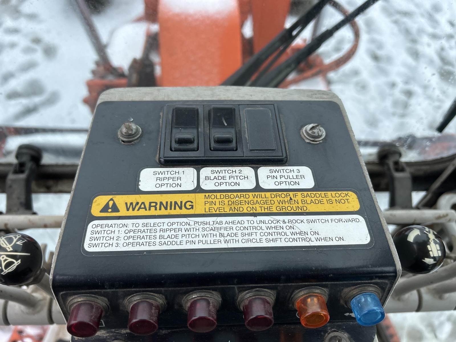 New Holland 4 Cylinder Diesel Engine, 6F/3R Powershift Transmission, Approx 10' Moldboard, Moldboard Raise/Lower/Offset/Rotate/Sideshift, Wheel Lean, Articulate/Frame Steer, Approx 11' Rear Moldboard, EROPS, Lever Controls, Heat, 15-19.5 Tires