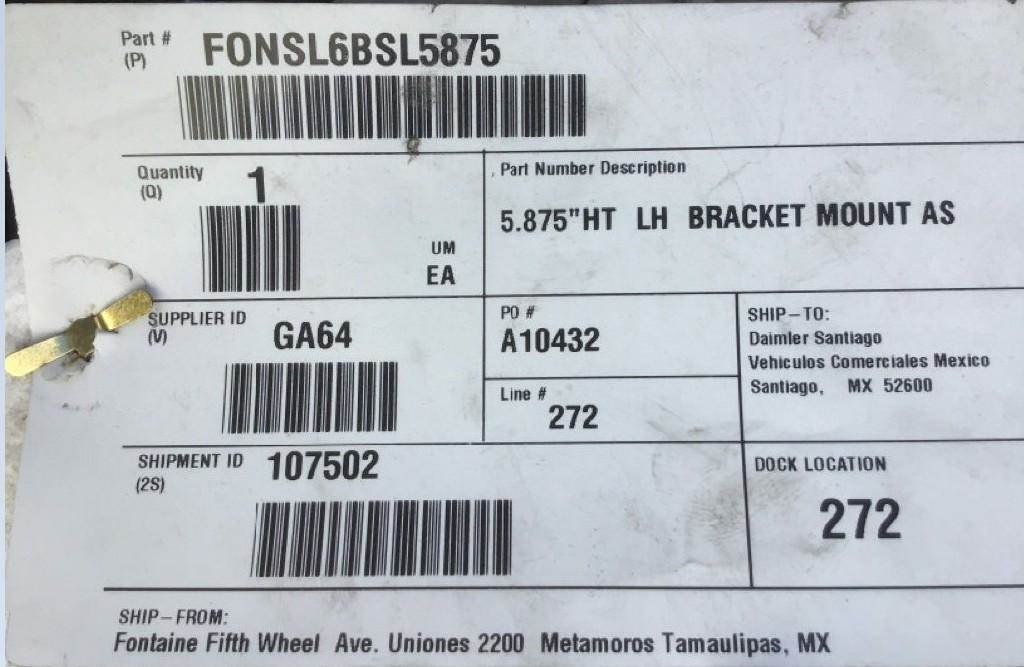 NEW FONTAINE STAIONARY FIFTH WHEEL **MISSING PULL HANDLE**