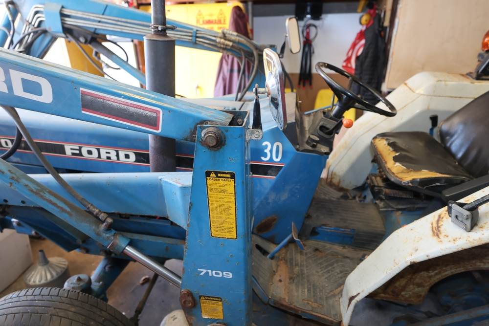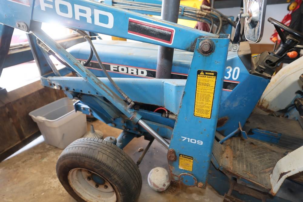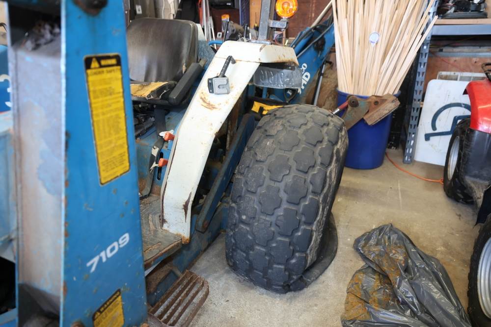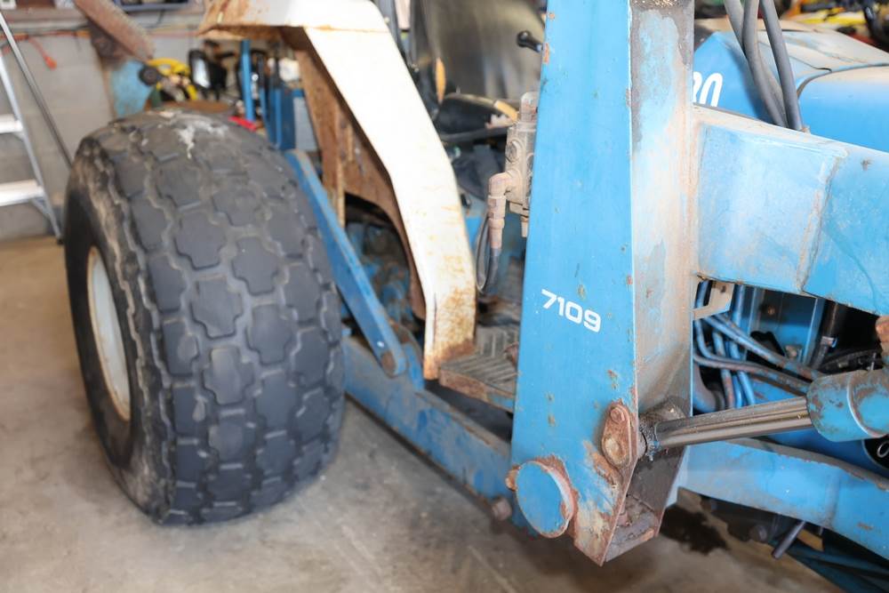 Ford 7109 Backhoe Loader. Hours reading: 3815. Seller reports: Operated when removed from service. Includes: Front Bucket, Rear Backhoe. Damaged tires.
