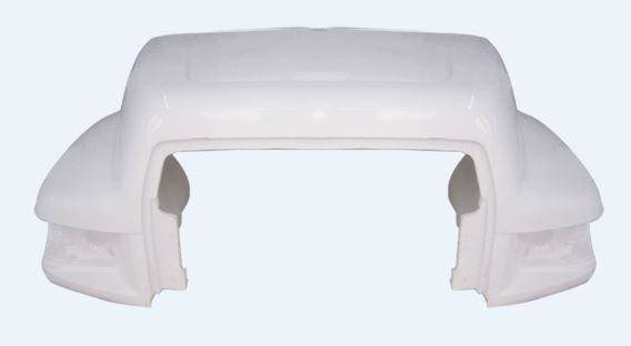 1994-1999 FORD F-600/700 PREMIUM FIBERGLASS HOOD NOT PAINTED, 39 1/2" LONG, 74 1/2" CAB WIDTH, 95 3/4" TOTAL WIDTH IN CRATE.