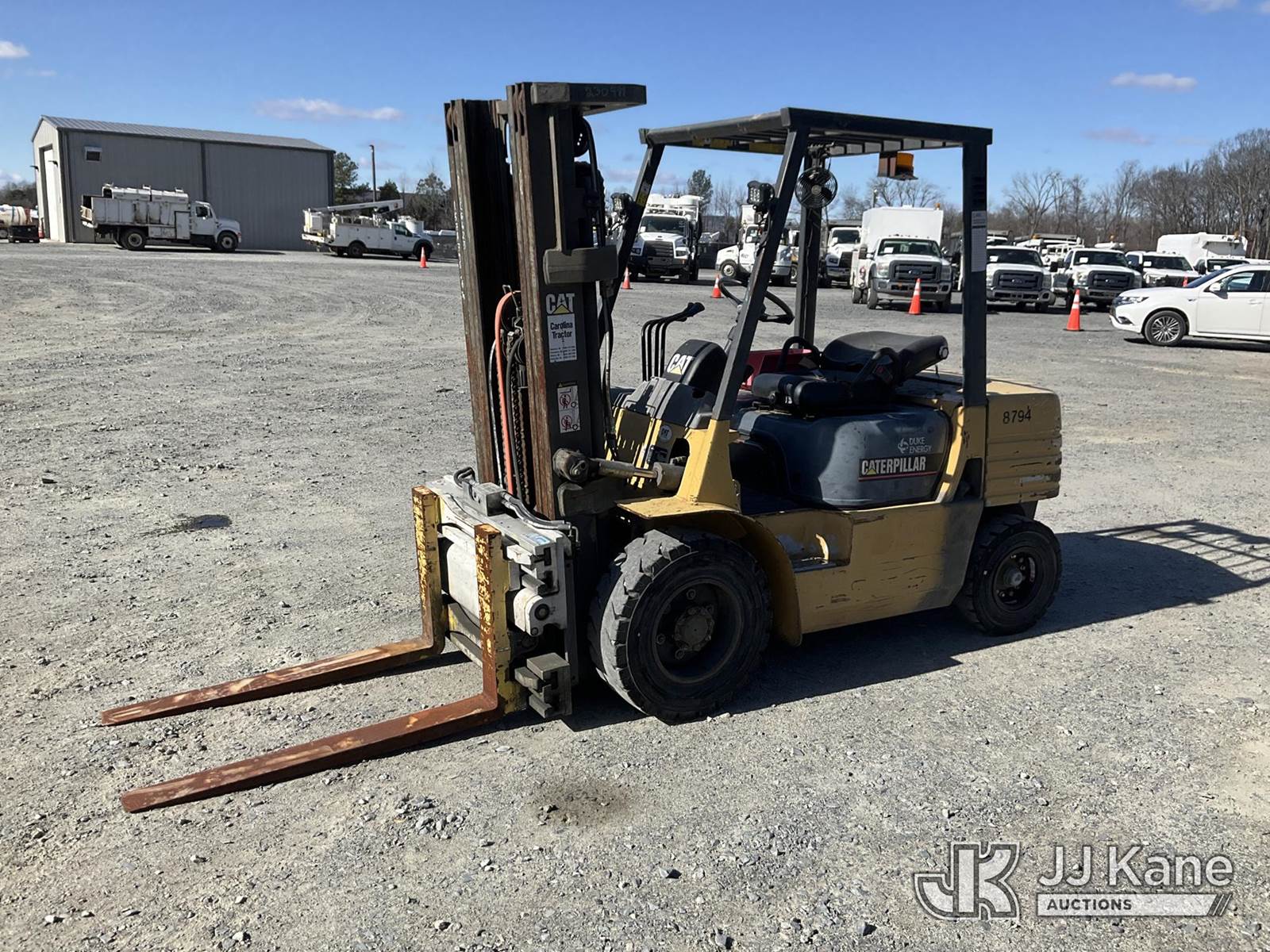 Forklift Solid Tired Forklift, s/n 7BM01804, Cat Shuttle, diesel, with 186 in 3 stage mast, 42 in forks, hyd in & out, hyd side shift & ROPS, (Duke Unit) (Runs, Moves & Operates) (Broken Seat, Hyd Leak) (Reads 4,814 hours) NOTE: This unit is being sold AS IS/WHERE IS via Timed Auction and is located in China Grove, NC. Inspection & preview days for this unit are the 2 business days prior to the first day of items closing for this auction, item is located at 820 E NC Hwy 152 China Grove, NC 28023 and hours of operations are 8a-4p. For pre-sale questions, please contact Office Staff @ (704) 674-1113. (Buyer is responsible for removal. Assistance by consignor or JJ Kane Auctions is not assured.)