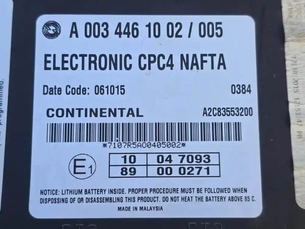 (Used), ECMs (Control Modules) BODY ECMs- Make: ELECTRONIC CPC NAFTA, Part Number: A 002 446 82 02/ 007, Serial Number: 7116Z7280622022,...
