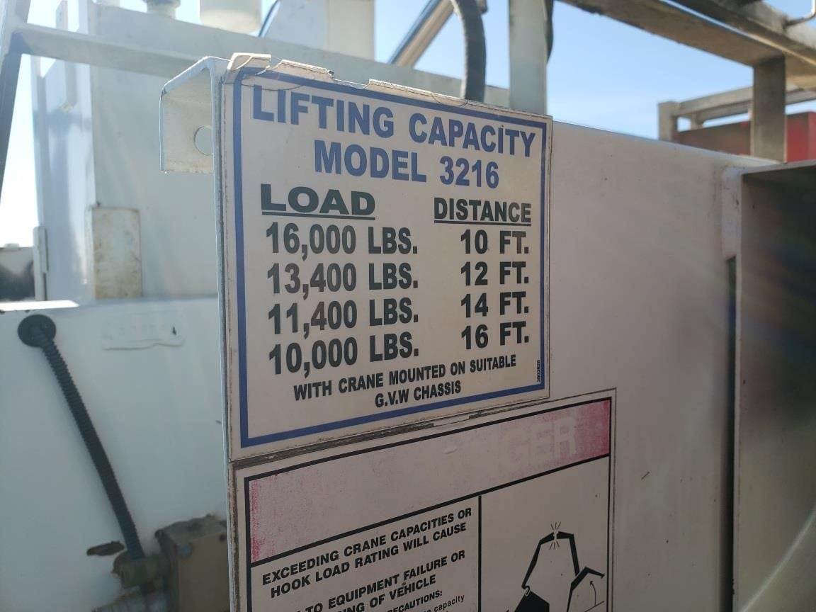 Double frame service truck with IMT 2820 3-section boom with 5,000 lbs. capacity, hydraulic stabilizers, 14'6" body, 12K front axle and 21K...