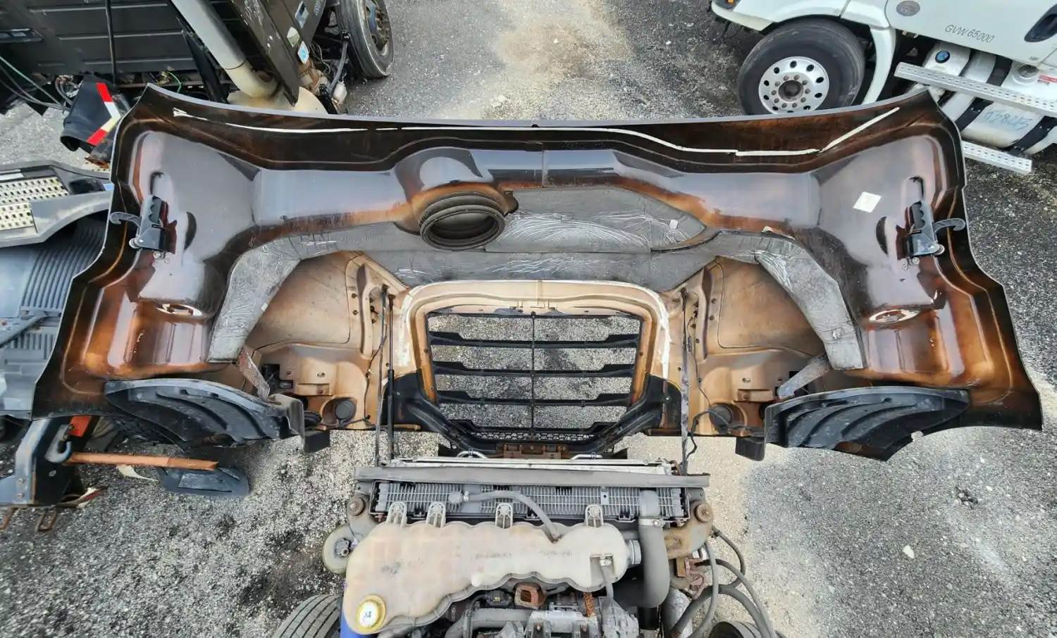 (Used) 2020 Freightliner Cascadia 116 Day Cab, HOOD ASSEMBLY- Length: 43" From Cowl to grille, Color: Brown, Material: Fiberglass, It's Broken, Reference images for condition, For more information about this item, give us a call. We ship Worldwide! (CRG HEAVY TRUCK PARTS) 929 W PULASKI HWY ELKTON, MD 21921, Length: 43" From Cowl to grille, Type: Manual