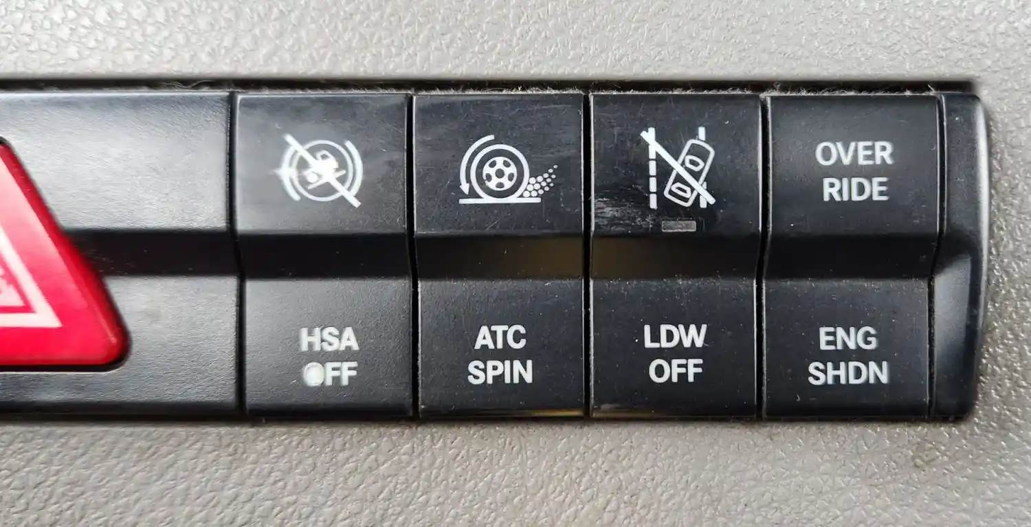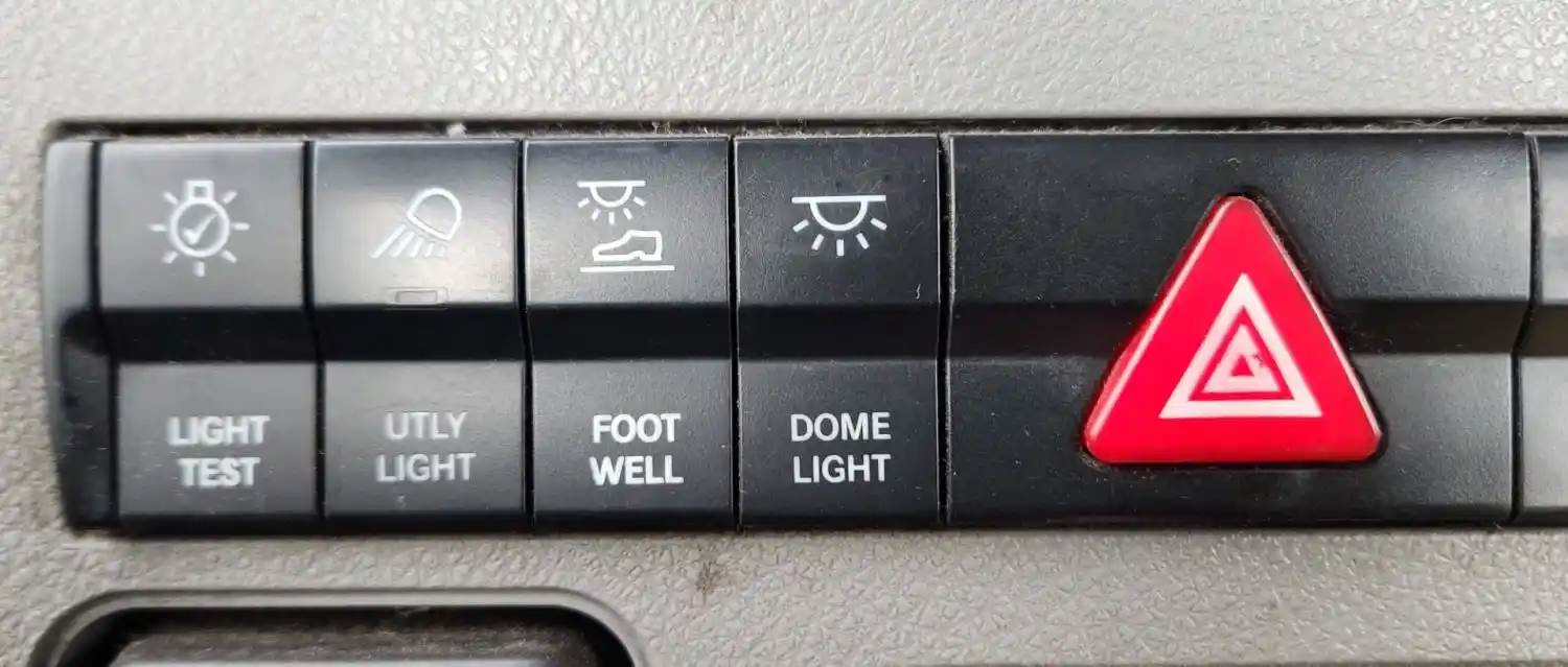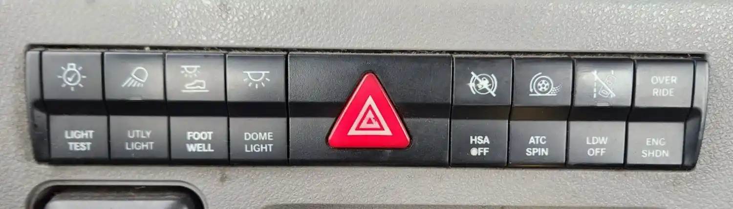 (Used) 2020 Freightliner Cascadia 116 Day Cab, MISCELLANEOUS DASH SWITCHES- Controls: Light Test, Utly Light, Foot Well, Dome Light, Hazard Lights, HSA Off, Atc Spin, Ldw Off, Over Ride-Eng Shdn, Material: Plastic, For more information about this item, give us a call. We ship Worldwide! (CRG HEAVY TRUCK PARTS) 929 W PULASKI HWY ELKTON, MD 21921, Material: Plastic