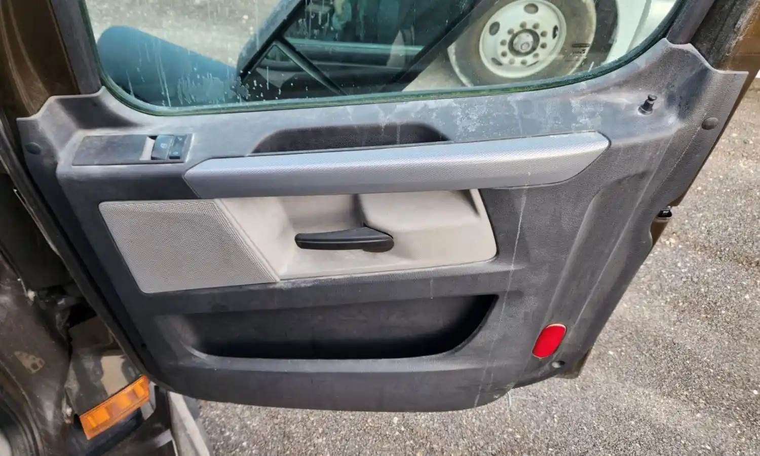 (Used) 2020 Freightliner Cascadia 116 Day Cab, INTERIOR DOOR PANEL- Side: Passenger Right Side, Color: Black with Grey, Type: Power, Material: Plastic, Reference images for condition, For more information about this item, give us a call. We ship Worldwide! (CRG HEAVY TRUCK PARTS) 929 W PULASKI HWY ELKTON, MD 21921, Material: Plastic