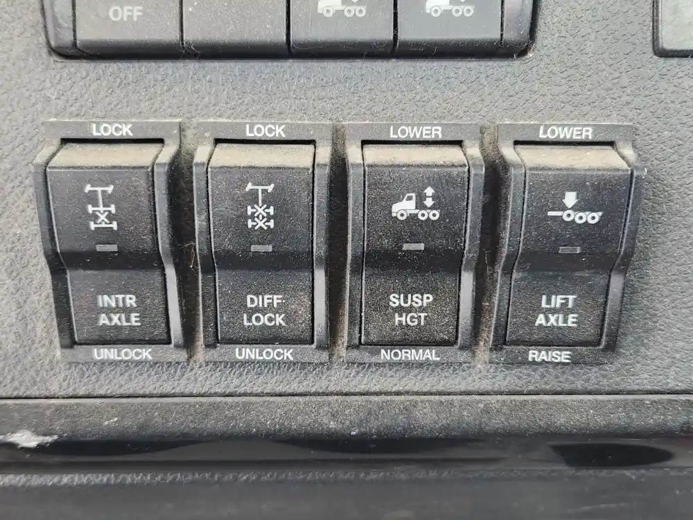 (Used) 2024 Freightliner Cascadia 116 Day Cab, MISCELLANEOUS DASH SWITCHES- Controls: Inter-Axle Differential Locked, Diff-Lock-Dual, Air retention, Lift axles, Material: Plastic, Reference images for condition, For more information about this item, give us a call. We ship Worldwide! (CRG HEAVY TRUCK PARTS) 929 W PULASKI HWY ELKTON, MD 21921, Material: Plastic