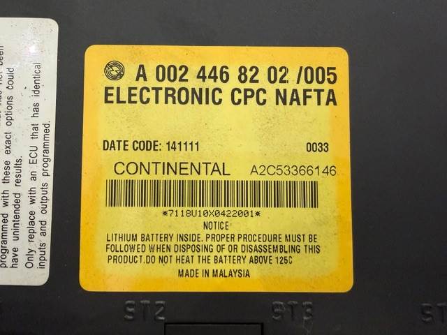 (GOOD USED) Freightliner Cascadia Continental CPC Chassis Control Module, for sale!!!! Part #:A0024468202/005, Continental Part #: A2C53366146; Stock #: E4462