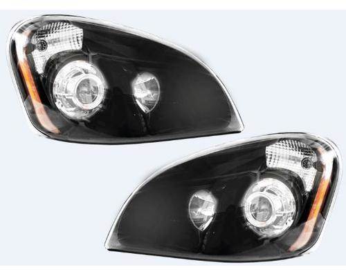 2007-2018 FREIGHTLINER CASCADIA 125 PREMIUM SET OF BLACK PROJECTOR HEADLIGHT UNITS, BULBS NOT INCLUDED.