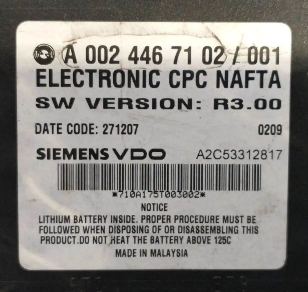 Freightliner Century 120 Electronic CPC, Part # A0024467102 / 001, A2C53312817 All CPC's sold with a 30 day “parts only†warranty. In the event of failure, the CPC will be replaced or a refund will be issued. Warranty does not include labor or pro