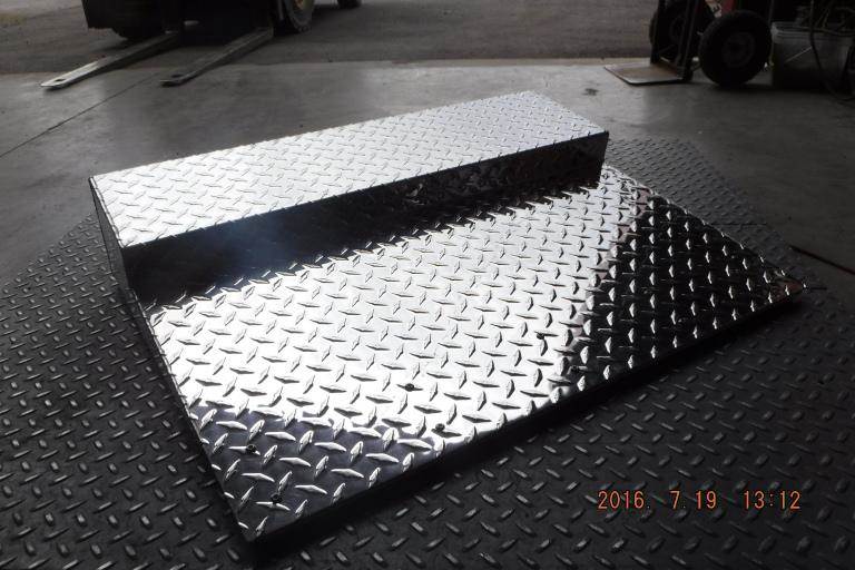 Tool Box Lid w/Hinge Make Kenworth Model W900 Size 45 Units 1 Unit Material S.S. Gauge 14G Alloy #304 Finish #8 ND Shipping ,...