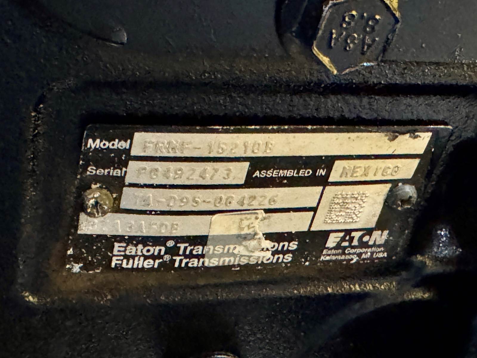(GOOD USED INSPECTED) Eaton Fuller FR016210C Transmission For Sale, 10 Speed w/ Overdrive, FRO16210C, TA-D60-074913, TA-D60-074913,...