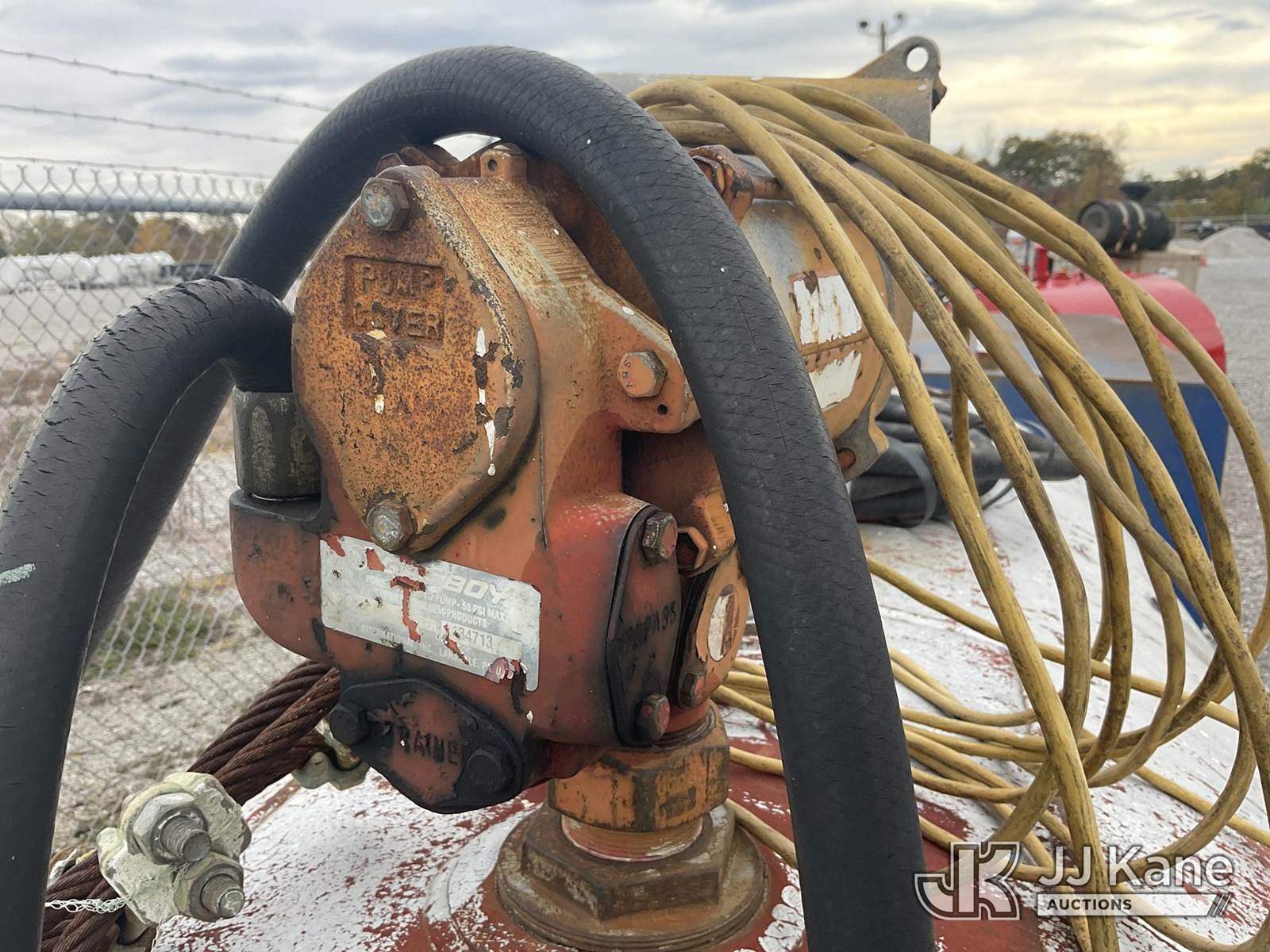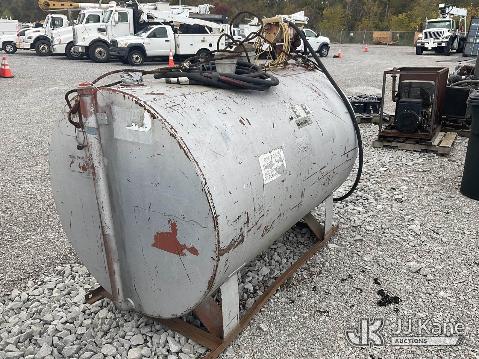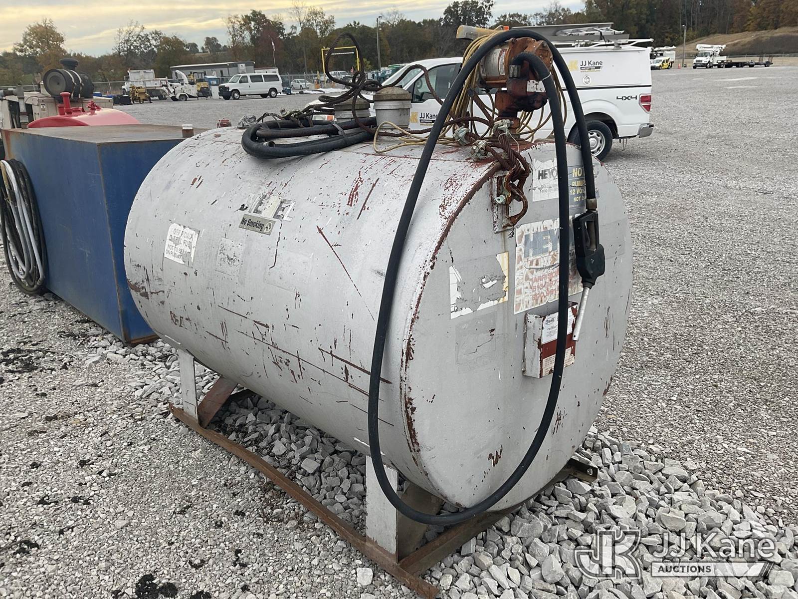Fuel Tank & Transfer Pump (Condition Unknown (Seller States 500 Gallon Capacity) NOTE: This unit is being sold AS IS/WHERE IS via Timed Auction and is located in Verona, KY. Inspection & preview days for this unit are the 2 business days prior to the first day of items closing for this auction, item is located at 2841 Verona-Mudlick Rd Ste B Verona, KY 41092 and hours of operations are 8a-4p. For pre-sale questions, please contact Office Staff @ (502) 612-5080. Auctioneer Michael Whitebread / License # 256617. (Buyer is responsible for removal. Assistance by consignor or JJ Kane Auctioneers is not assured.)