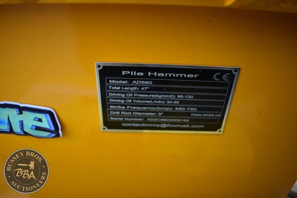 Future AD680 Hydraulic Post Pounder, 47" Length, 95-130 kg/cm² Pressure, 30-45 L/min Oil Volume, 460-760 BPM Strike Frequency, 3" Drill Rod Diameter, Serial Number: AD20286012.