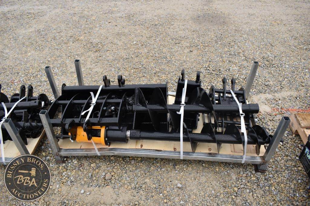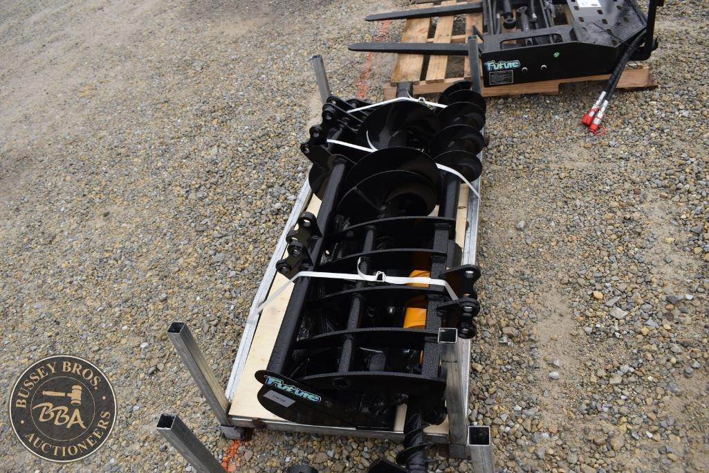 Future Assorted Attachment Set contains buckets, auger and bits, root rake, grabber, NEW/UNUSED