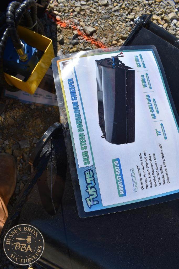 Future FSP-72B Skid Steer Broom Attachment, 72" Width, Hydraulic, Universal Skid Steer Mount, Hydraulic Flow Requirement: 15-25 GPM, Mounting System: Universal Quick Attach.