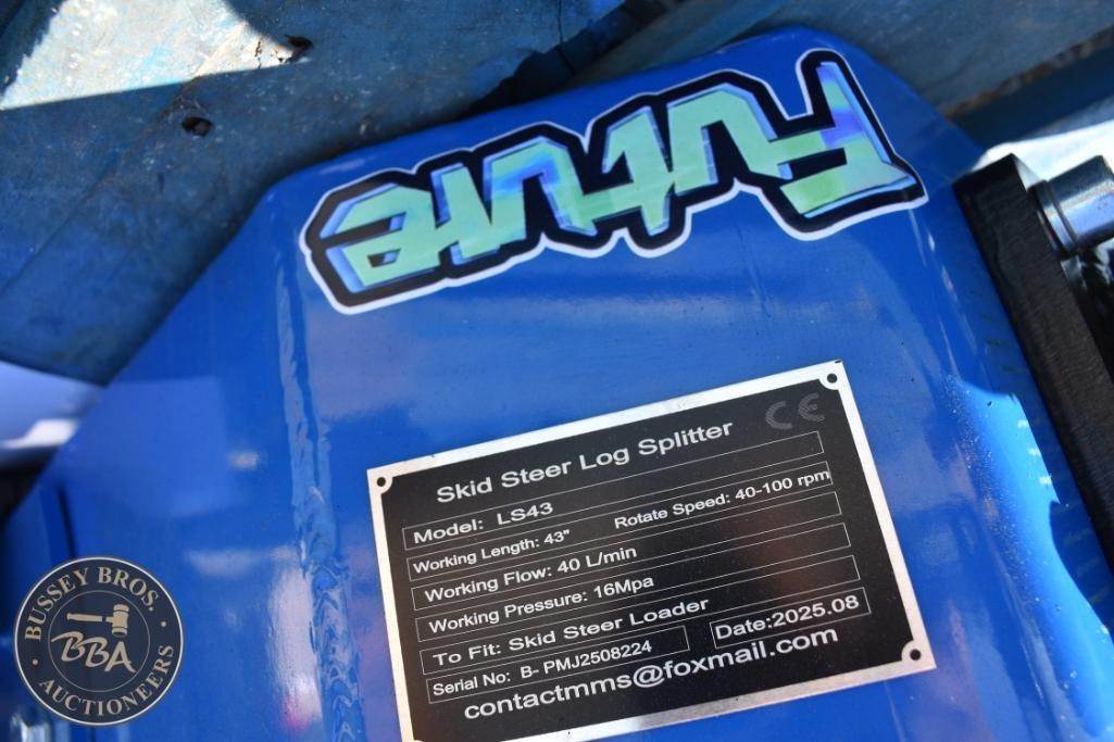 Future LS43 Mini Skid Steer Log Splitter, Rotate Speed 40-100 RPM, Working Length 43 inches, Flow Rate 40 L/min, Working Pressure 16 MPa, Compatible with Mini Skid Steer Loader, Serial PMJ25062284.