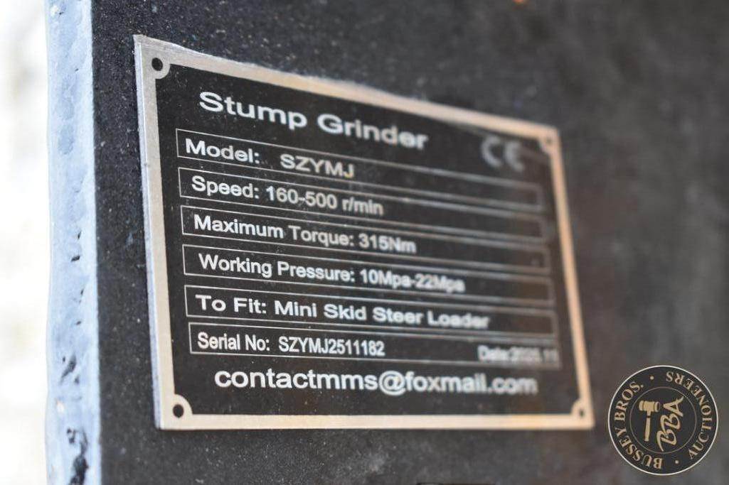 Future Mini Stump Grinder Attachment Mini skid steer mount, hydraulic powered, SN:SZYMJ251181, NEW/UNUSED,