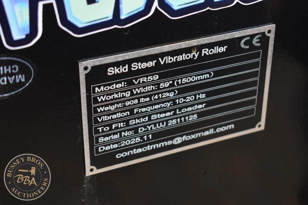 Future Roller Attachment Skid Steer mount, hydraulic drive 59 inch wide, viberating, SN:DYLUJ2511122, NEW/UNUSED