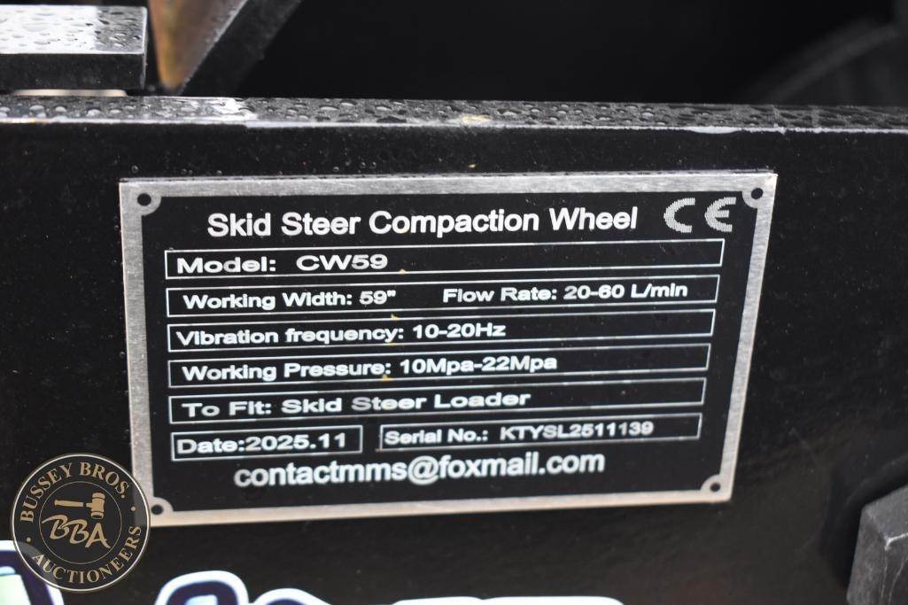 Future Sheepsfoot Roller Attachment Skid Steer mount, hydraulic drive 59 inch wide, viberating, SN:KTYSL251139, NEW/UNUSED