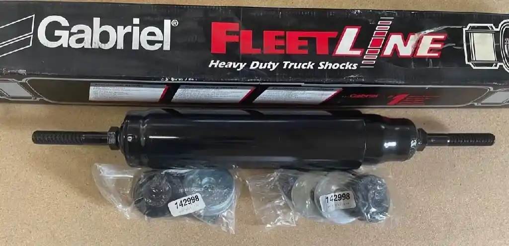 Gabriel Fleetline 83000 Series Shock Absorber - 83456 Gabriel 83456 FleetLine Shock Absorber Specifications Product Line: FleetLine Extended Length: 24.03 in. 610.36 mm. Collapsed Length: 14.25 in. 361.95 mm. Stroke: 9.78 in. 248.41 mm. Bore: 1-3/8 in. Dust Tube: YES Recoil Cutoff: NO Rebound: 566 lb. Compression: 80 lb. Mounting Information Upper Mount Code: S21 Upper Mount Kit (QTY): 142998 (1) Lower Mount Code: S21 Lower Mount Kit (QTY): 142998 (1) External Diameter Illustration: B Where Used Make Series Additional Information IC CORPORATION RE Series School Bus RE Model School Buses with O.E.M. Number INTERNATIONAL (NAVISTAR) F & S Series 1600, 1700, 1800, 1900, 2100 Models INTERNATIONAL (NAVISTAR) F & S Series 1624, 1654, 1724, 1754, 1824, 1854, 1924, F1924, 1925, 1954, F1954, 1955, 2124, 2125, F2125, 2154, 2155, 2275, F2275, 2524, F2524, 2554, F2554, 2574, F2574, 2575, F2575, F2624, F2654, F2674 Models with 9000, 10800 or 12000 lb Front Axle International (Navistar) Metro & Multi-Shop Series M1600, M1700, M1800, M1900, M2100 Models with 9000, 10800 or 12000 Front Axle International (Navistar)) Metro & Multi-Shop Series M1600, M1700, M1800, M1900, M2100 Models with Front Axle Codes 02109, 02118, 02309, 02127, 02139, 02329, 02339 International (Navistar) S Series School Bus 1823, 1853 S Models with 9000, 10800 or 12000 lb Front Axle International (Navistar) Series 1000 Forward Control Chassis 1452, 1652 Models International (Navistar) Series 1000 Forward Control Chassis M1400, M1600 Models International (Navistar) Series 2000 - Conventional Truck (Severe Service) All 2000 Models with 12000 lb Front Axle International (Navistar) Series 3000 - School Bus Chassis 3700, 3800 Models International (Navistar)) Series 4000 - Short Conventional Medium Truck & Tr 4600, 4700, 4800, 4900 Models International (Navistar) Series 4000 - Short Conventional Medium Truck & Tr 4600, 4700, 4800, 4900 Models with 10000 lb Front Axle International (Navistar) Series 4000 - Short Conventional Medium Truck & Tr F-4900 Models with 10000 lb Front Axle International (Navistar)) Series 7000 - Short Conventional Medium Truck & Tr 7100 Models International (Navistar) Series 8000 - Conventional Heavy Duty Tractor 8100 Models Car Hauler International (Navistar) Series 8000 - Conventional Heavy Duty Tractor 8100, 8200, 8300 Models Mitsubishi-Fuso FM Series FM555 desc1: 83000 Series Shock Absorber, Core Charge: 0.00