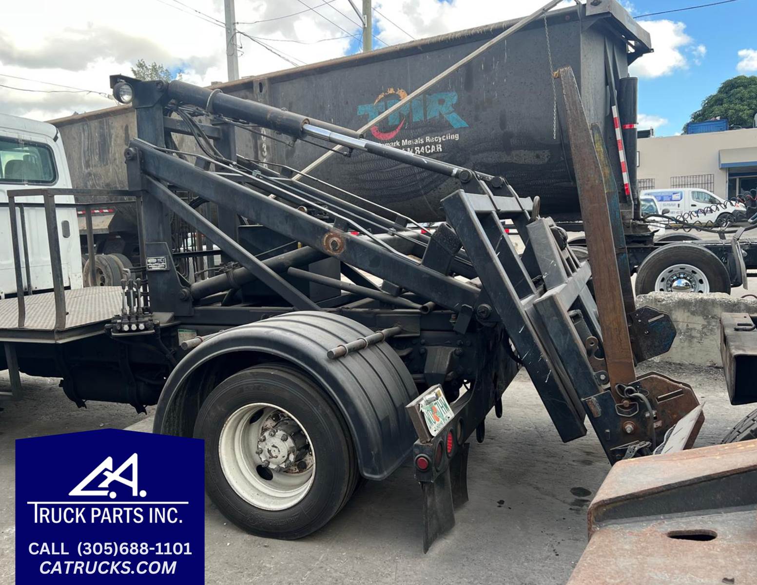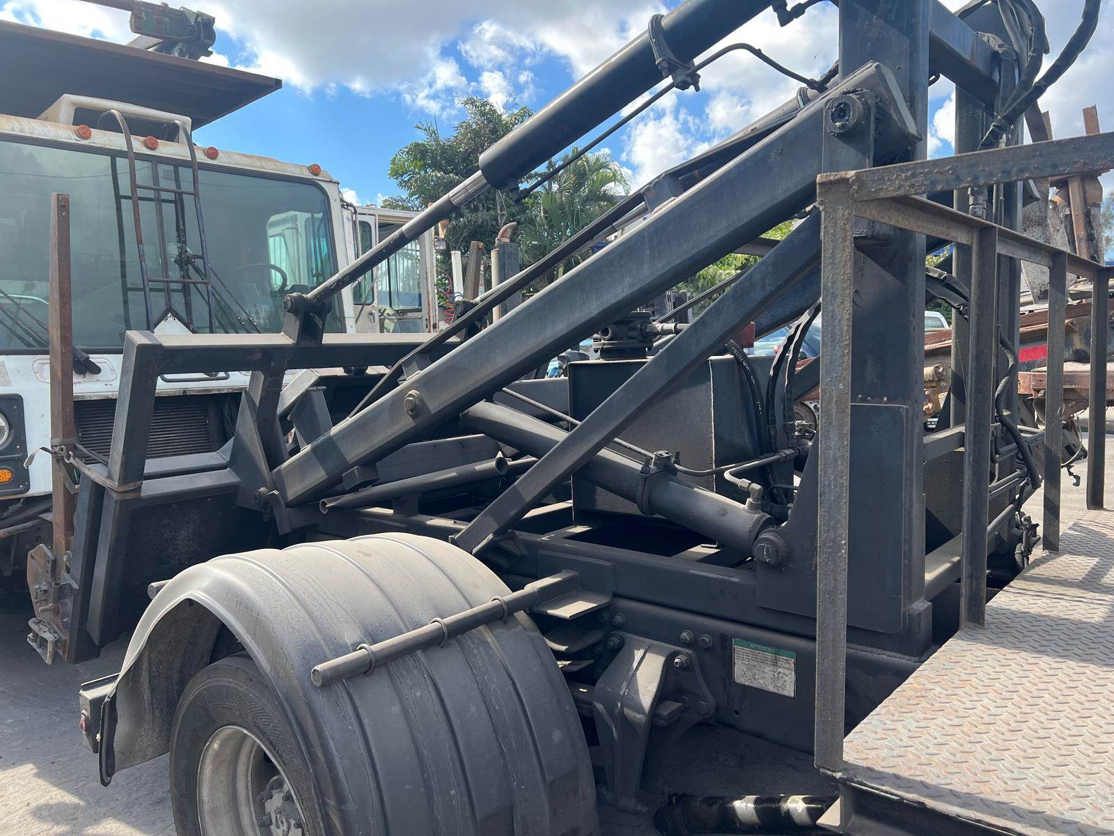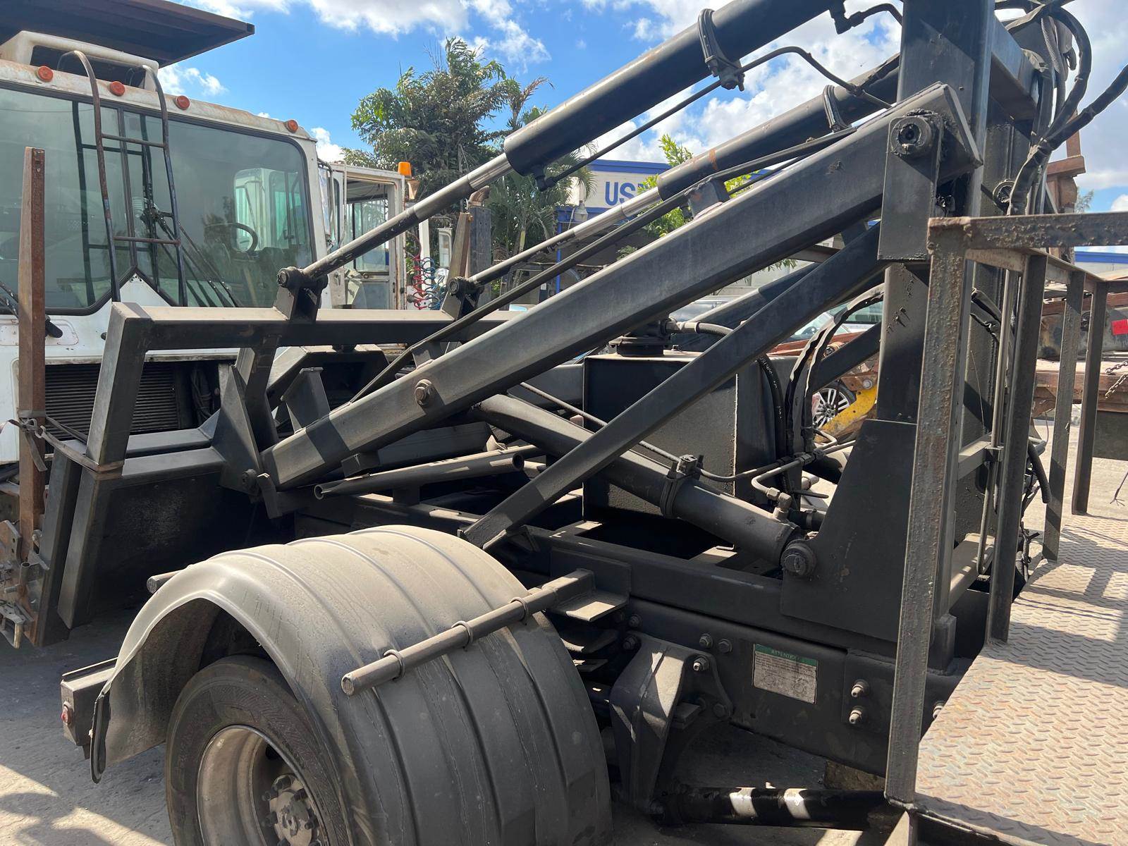 (GOOD USED) Galbreath CH8000 Container Handler w/o Rotator For Sale, Model: CH8000, Part # 3314R4, Handles REL and FEL containers w/ capacity rating up to 8K lbs., Handles FEL containers from 2 to 10 yards and REL containers from 2 to 6 yards, PULLED OFF 2005 FREIGHTLINER M2 106, Serial # 13WCH443, Stock # 9811-1, ***ONLY CONTAINER HANDLER*** REFER TO PHOTOS! Model: CH8000 Part # 3314R4 JOB NO. 259731 Serial No. 13WCH443 Date: 07/11 Rated Cap. 8000Lbs Compatible with ANSI Z245.60, Z245.1 Rating Capacities: 8K LBS Lifting, 4K LBS Hauling & Ratating Ratchet / Hold Down System: Retainer Straps Air Controls: Inside air controls for conventional cab, 2 spool standard (non-rotator) or 3 spool (rotator) Lighting: LED Safety Hoist-up alarm w/ signal light Fenders & Bumpers: Poly w/ standard LED light bumper Frame Assembly: 5” x 3” Direct mount pump Oil reservoir (inside frame mount) Outside 2 or 3 spool valve Rear load attachment Pintle or Reese-ready apron