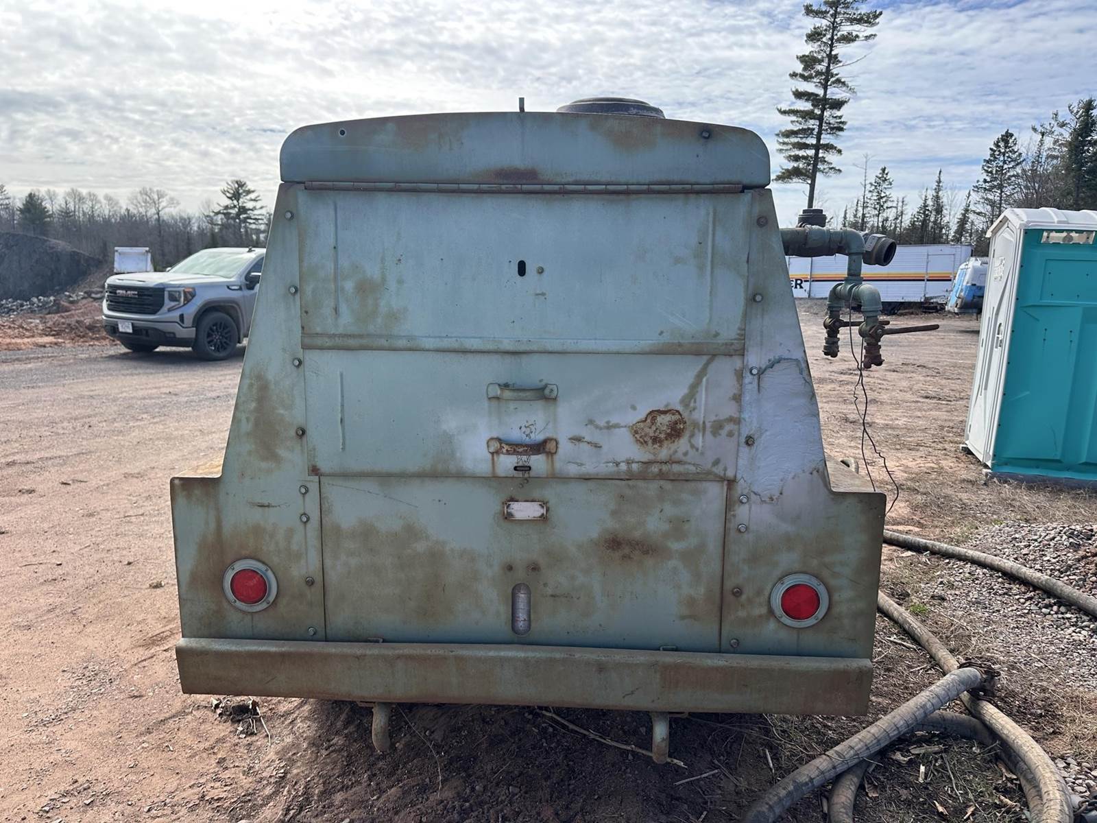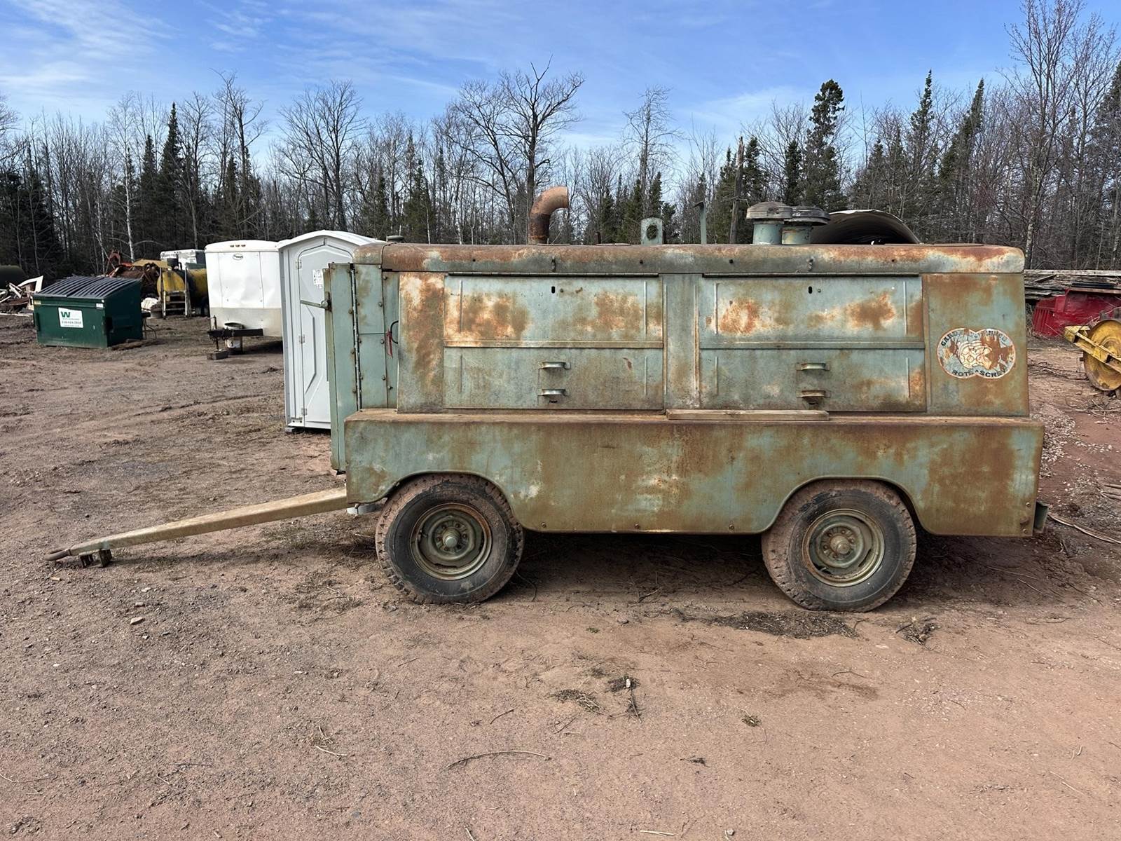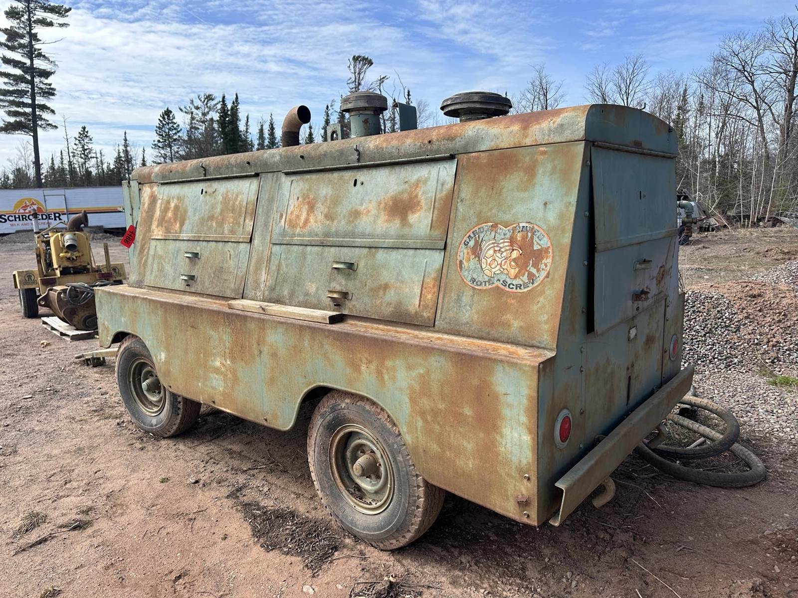 Caterpillar 3306 Turbo Diesel Engine, Gardner Denver SP600DK 600CFM Rotary Screw Compressor, Spring Ride, Pintle Coupler, 7.50- 15 Tires