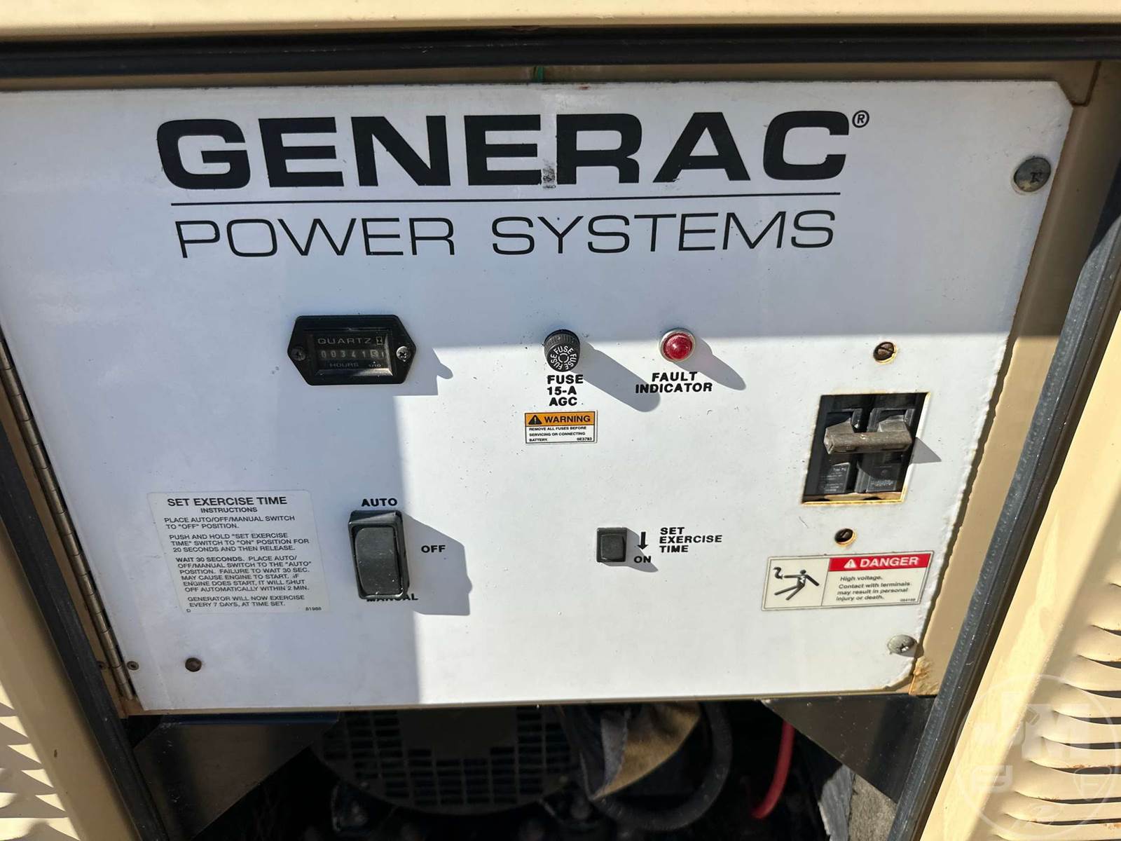 GENERAC STATIONARY GENERATOR, MITSBISHI 4 CYL LPG ENGINE, HOUR METER READS: 341