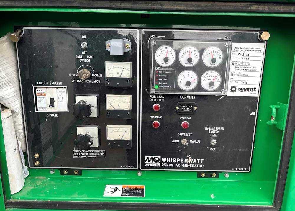 NOW OFFERING EASY BUSINESS FINANCING! WE TAKE TRADES!! Please call Gary with any questions or to discuss any additional details including price! * 2016 MultiQuip 20 KW Generator * Model: DCA-25SSIU4F * Isuzu Diesel * NON DEF!! * 20 KW / 25 KVA * 3 Phase / Single Phase * 60 Hz * 120 / 240 / 480 V Selectable * Portable, Trailer Mounted * 2" Ball Hitch Coupler * Hour Meter Reads: 4,946 * SN: 7152576 * Trailer SN: 4GNBG0910GB042656 EXTERIOR Paint: Good Body: Good Trailer: Good condition Tires: ST205/75D14 Wheels: Steel, good Generator: Good, operation and output normal Controls: Good DRIVE Engine Type: Isuzu turbo diesel Engine Condition: Good cold start, good compression, cylinder balance normal, good power, no blowby DIMENSIONS W: 56" x H: 5' 6" x L: 9' 7" Weight: 2,500 LB