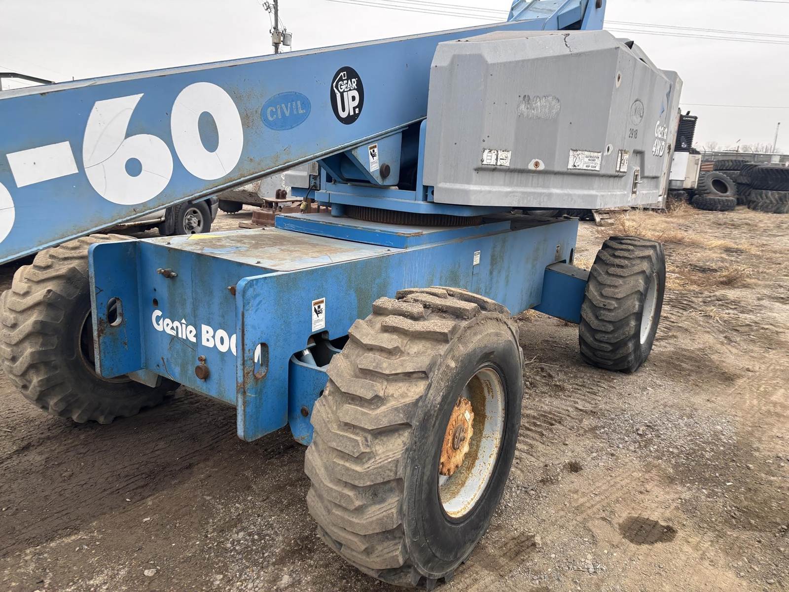Ford LP Gas Engine, Hydrostatic Drive, 4x4, Telescoping Boom, 500LB Capacity, 60' Max Platform Height, Approx 50' Max Horizontal Reach, Ground And Platform Controls, 15-19.5 Tires,