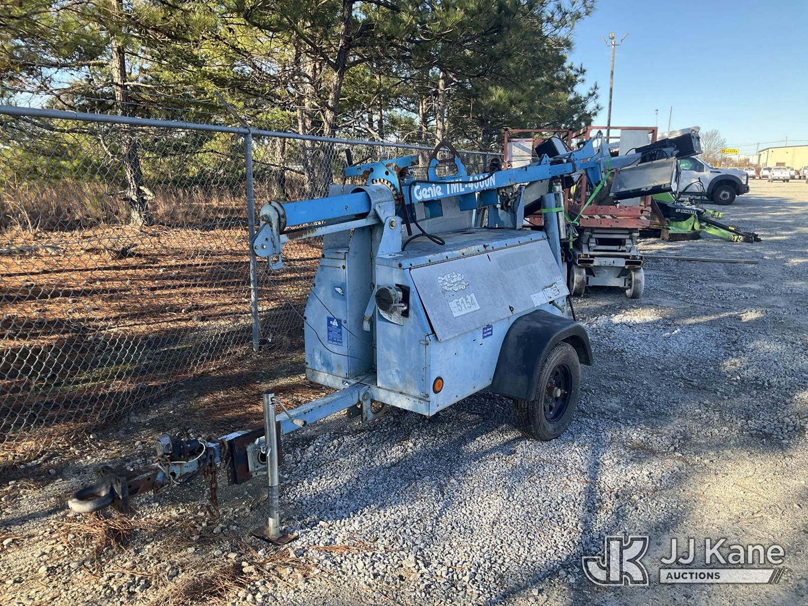 Genie TML-4000N Portable Light Tower, s/n TML07250, Focs diesel, trailer mtd. (No Title) (Two Lights Do Not Operate) (Reads 2,835 hours) NOTE: This unit is being sold AS IS/WHERE IS via Timed Auction and is located in Villa Rica, GA. Inspection & preview days for this unit are the 2 business days prior to the first day of items closing for this auction, item is located at 100 Liberty Rd Villa Rica, GA 30180 and hours of operations are 8a-4p. For pre-sale questions, please contact Office Staff @ (470) 590-8453. (Buyer is responsible for removal. Assistance by consignor or JJ Kane Auctions is not assured.)
