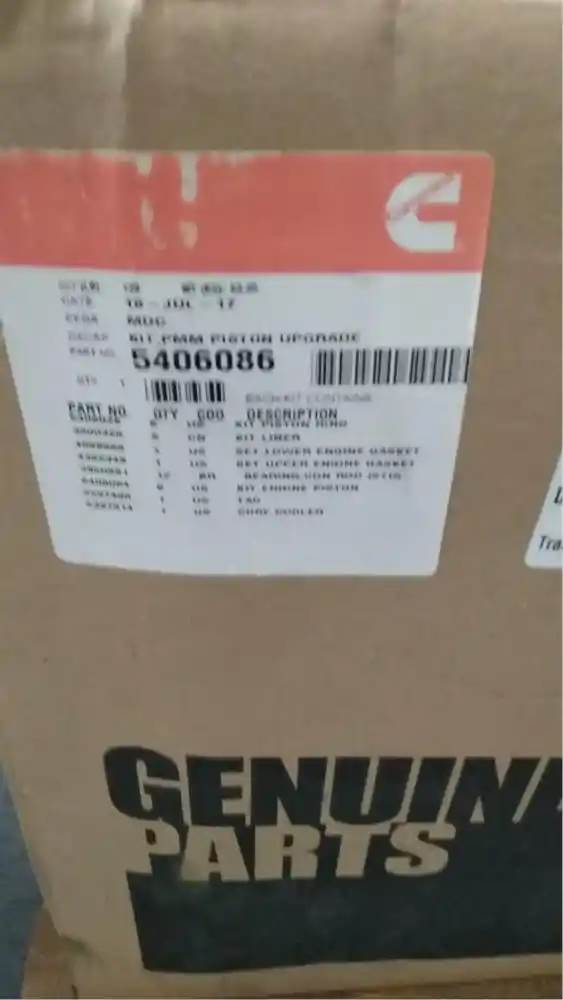 Genuine cummins PMM Piston upgrade Kit 5406086 DESCRIPTION This upgrade kit enhances piston performance, offering superior durability and efficiency for engines under demanding conditions. It includes high-quality components engineered for improved combustion and reduced wear, leading to increased engine power and fuel efficiency. This kit is essential for engine rebuilds or upgrades, ensuring long-lasting performance improvements., Core Charge: 0.00