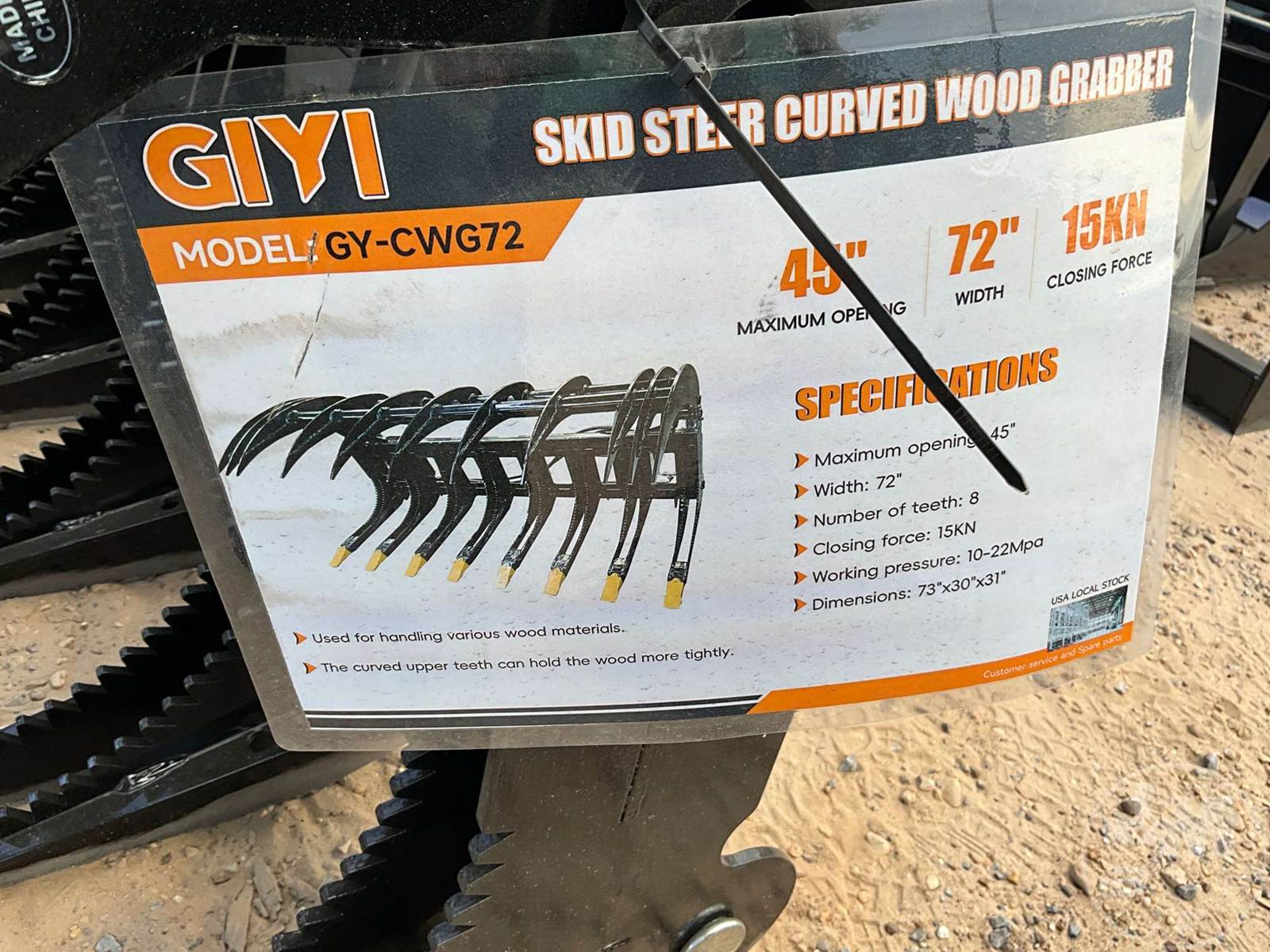UNUSED, 72" SKID STEER CURVED WOOD GRABBER